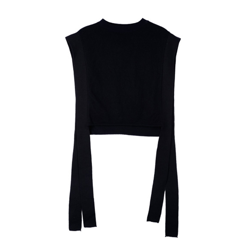 니트 조끼 여성용 봄과 가을 레이스 업 민소매 스웨터 한국식 느슨한 짧은 세련된 울 조끼 트렌디