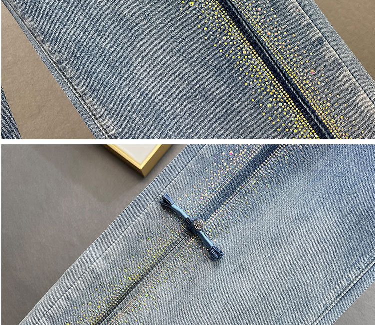 유럽풍 핫픽스 데님 여성 와이드 팬츠 2026 봄 신상 하이웨이스트 루즈핏 슬림핏 롱 팬츠 트렌디