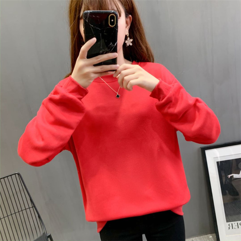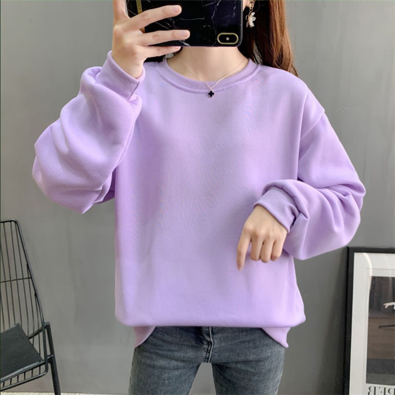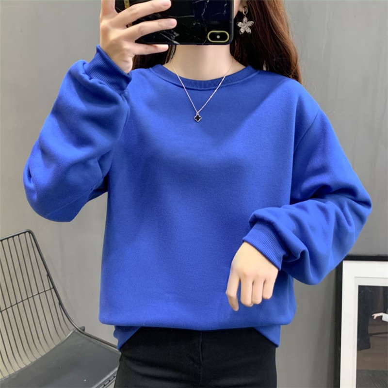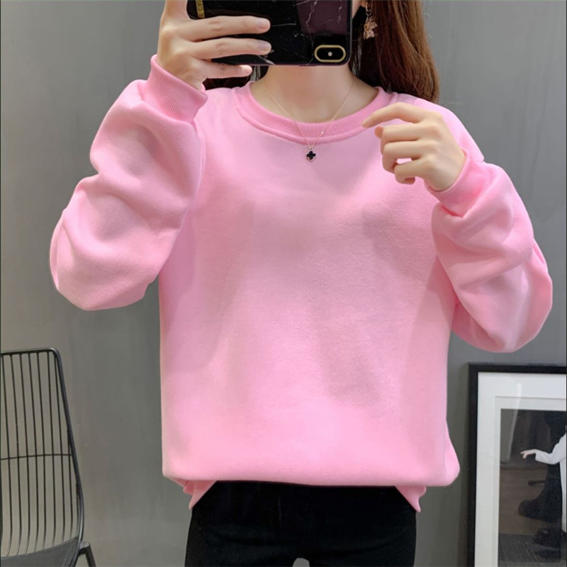 가을과 겨울 기모 남자와 여자의 새로운 스웨터 여자의 최고 긴 소매 빈 스웨터 도매 단색 승무원 목 남자 코트스토어 가기