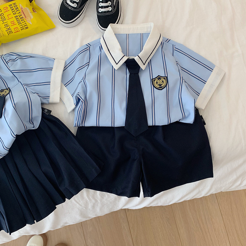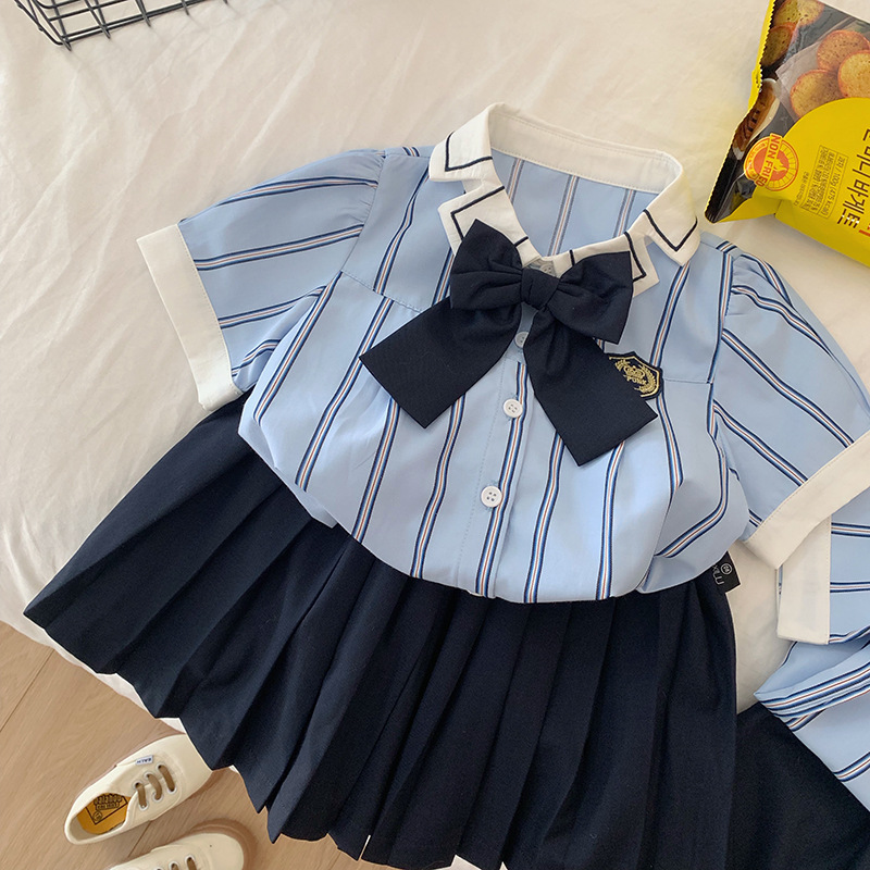 소년 소녀 대학 스타일 여름 셔츠 JK 유니폼 짧은 치마 반바지 투피스 세트 유치원 졸업 원피스스토어 가기