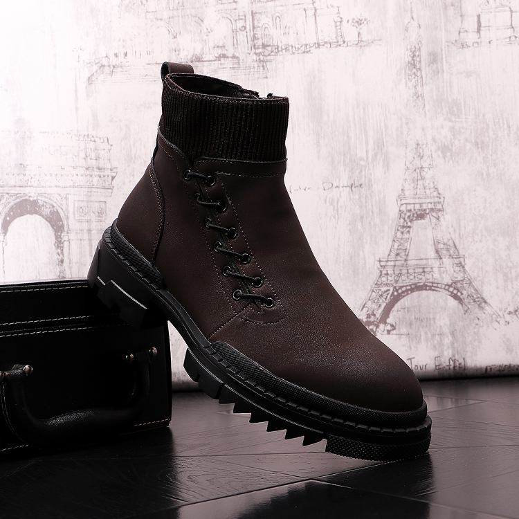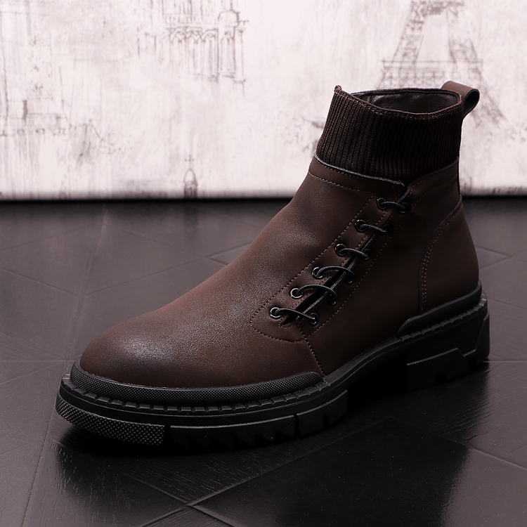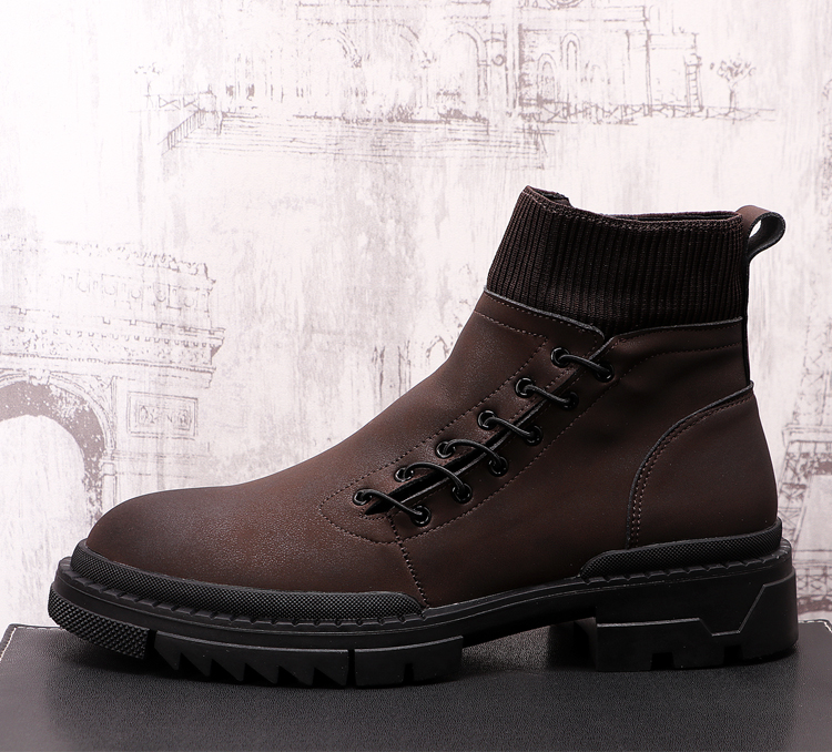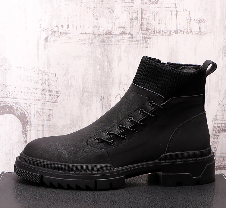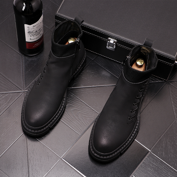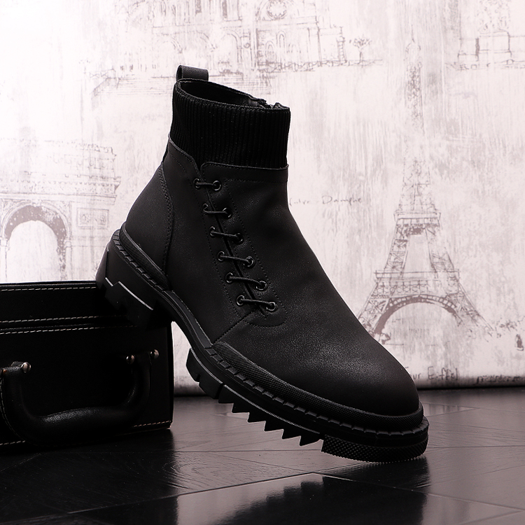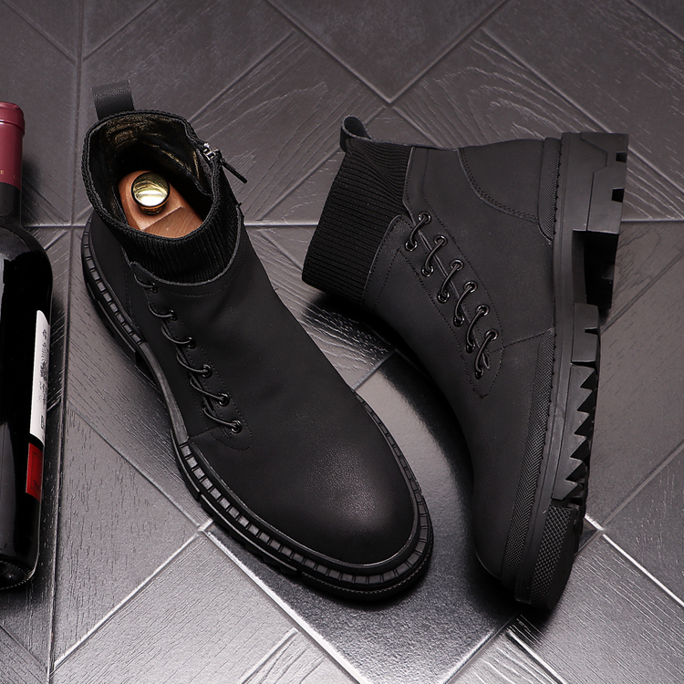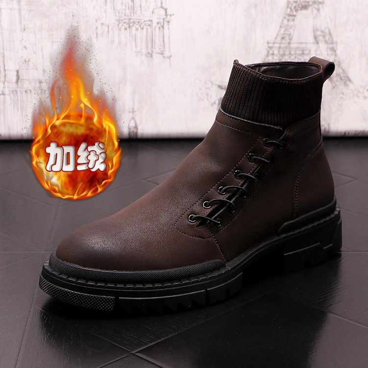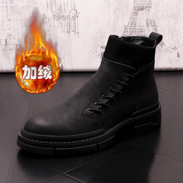 남자의 캐주얼 가죽 부츠 뾰족한 발가락 하이탑 남성 부츠 두꺼운 단독 증가 마틴 부츠 기모 따뜻한 면 신발 청소년 발목 부츠