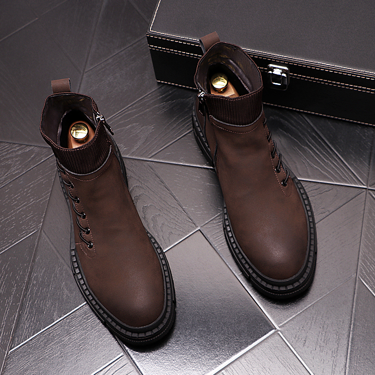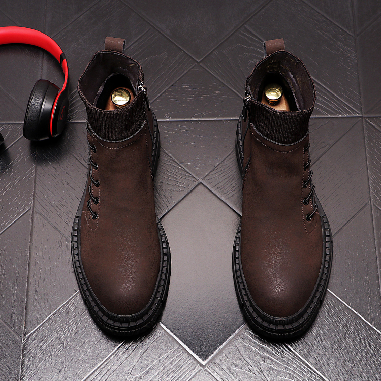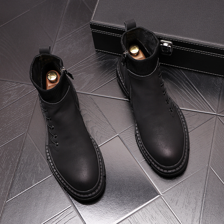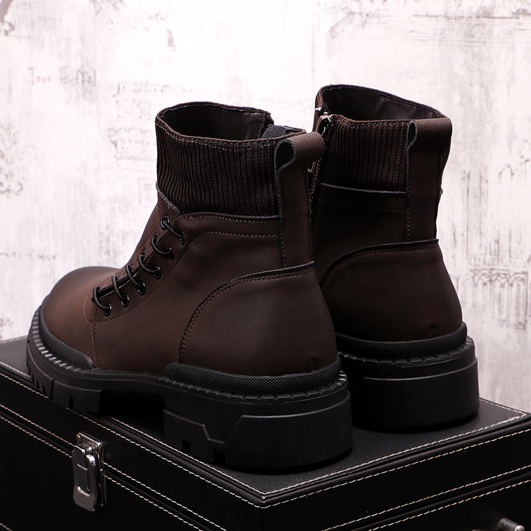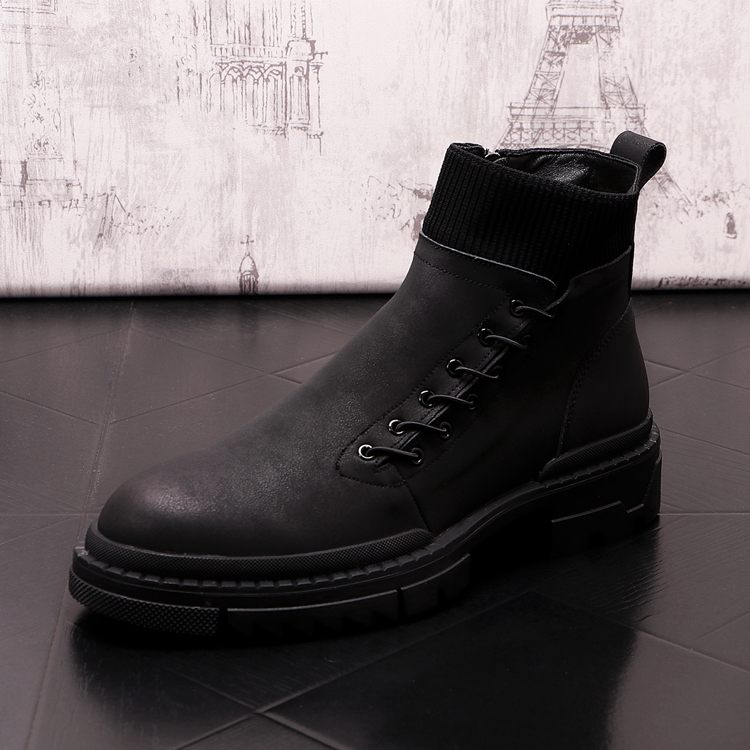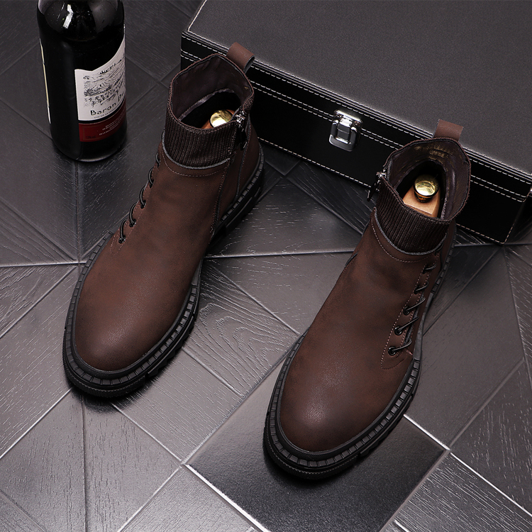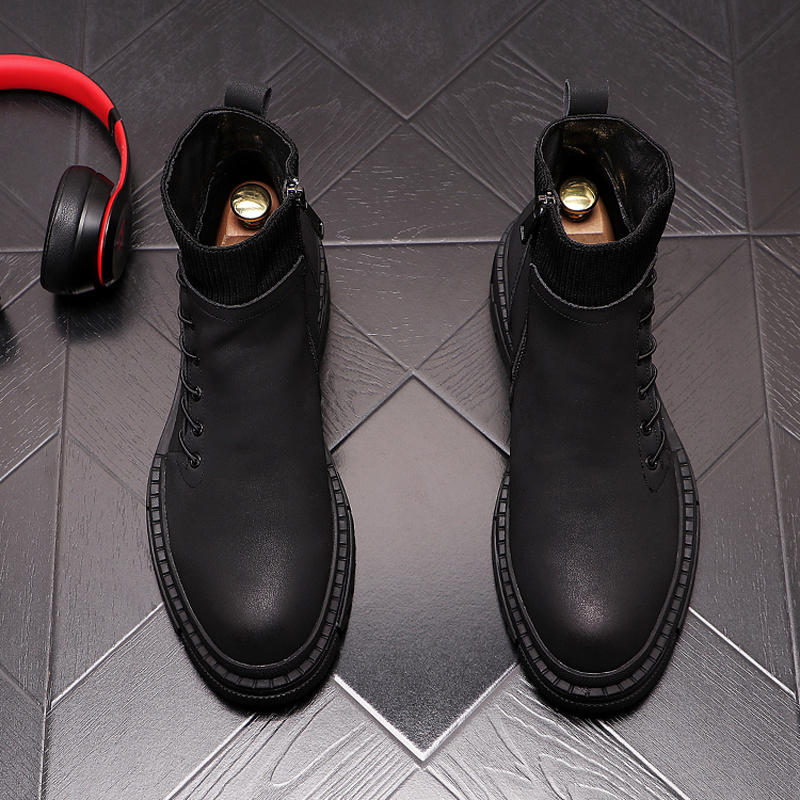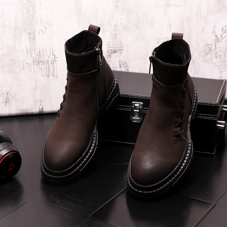 남자의 캐주얼 가죽 부츠 뾰족한 발가락 하이탑 남성 부츠 두꺼운 단독 증가 마틴 부츠 기모 따뜻한 면 신발 청소년 발목 부츠