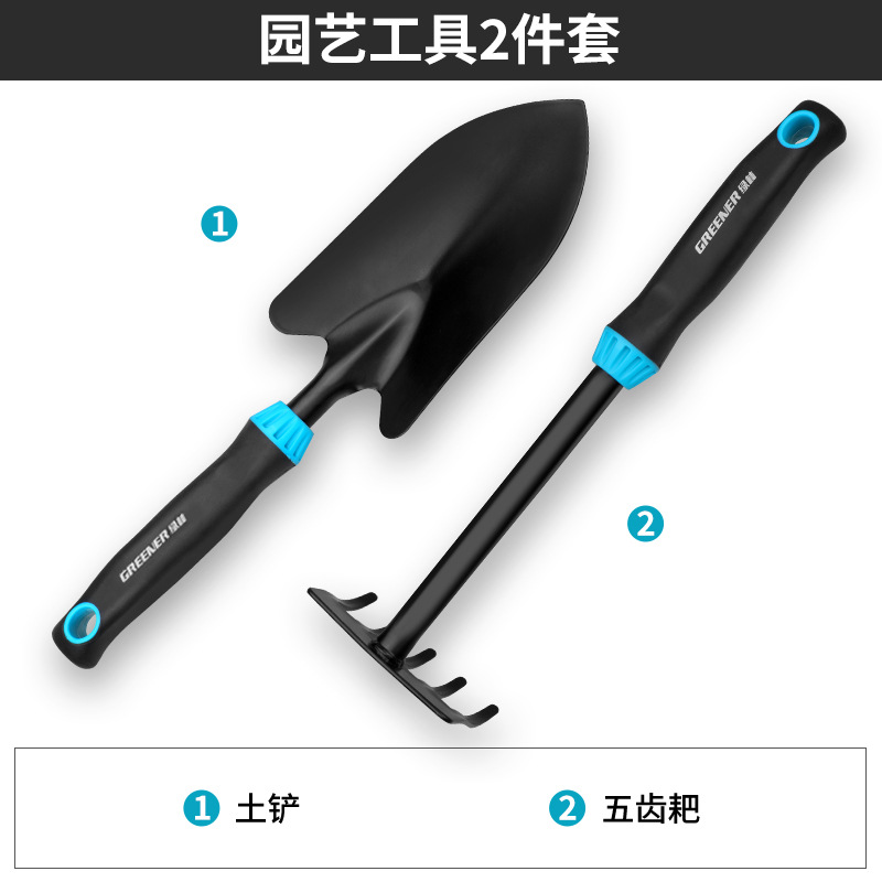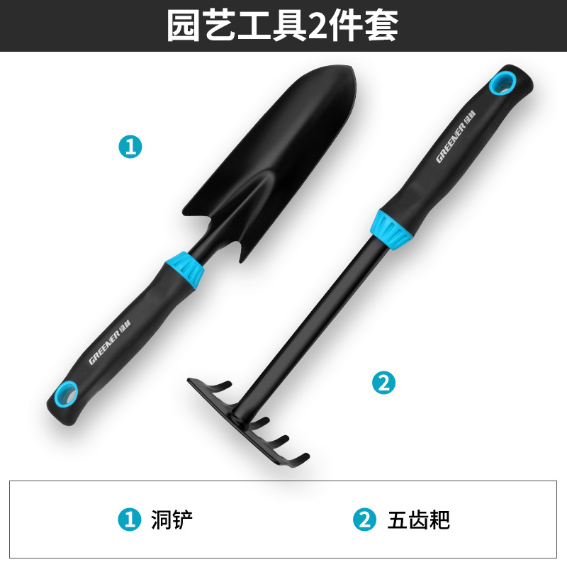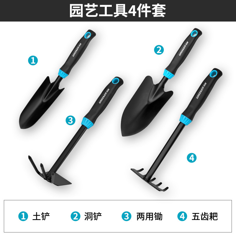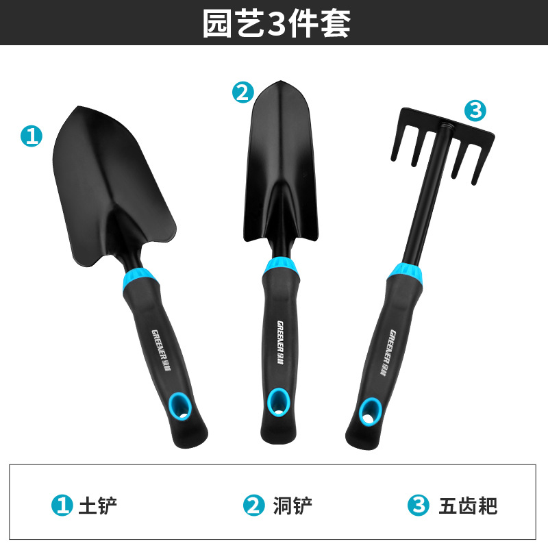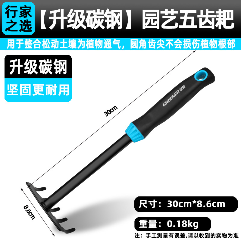 • [탄소강 업그레이드] 3 종 세트 (흙 삽 + 구멍 삽 + 5 치 해로우)
