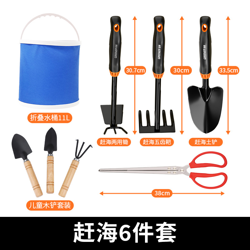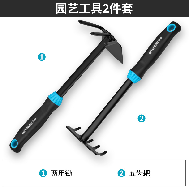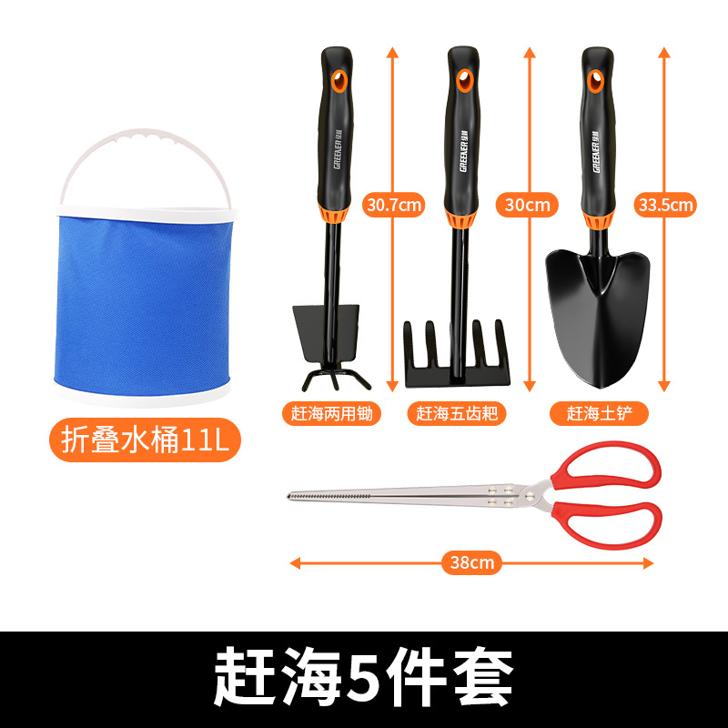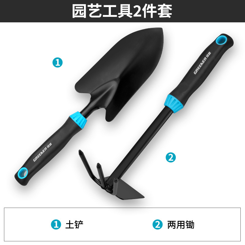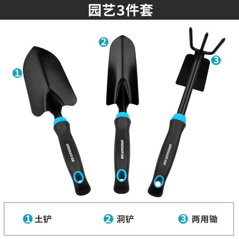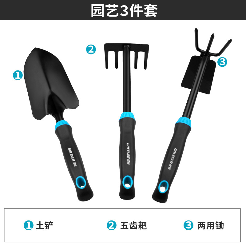 • [탄소강 업그레이드] 3 종 세트 (흙 삽 + 구멍 삽 + 5 치 해로우)