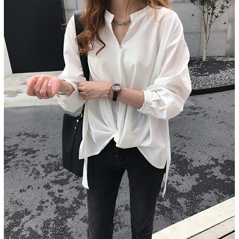 플러스 사이즈 여성 신상 심플 기질 셔츠 여성 가을 다용도 긴팔 탑 루즈 BF 셔츠 하의 셔츠스토어 가기