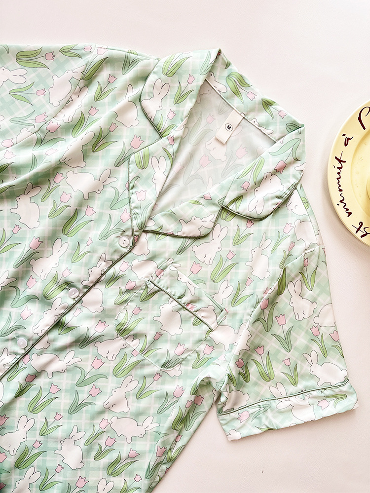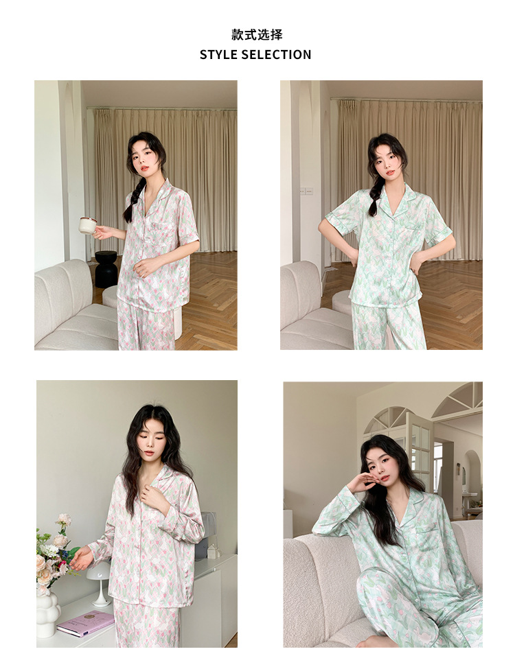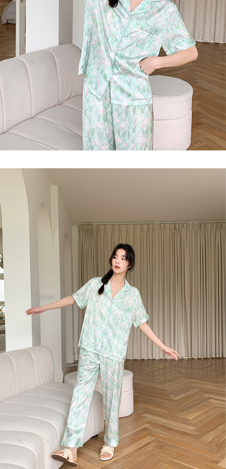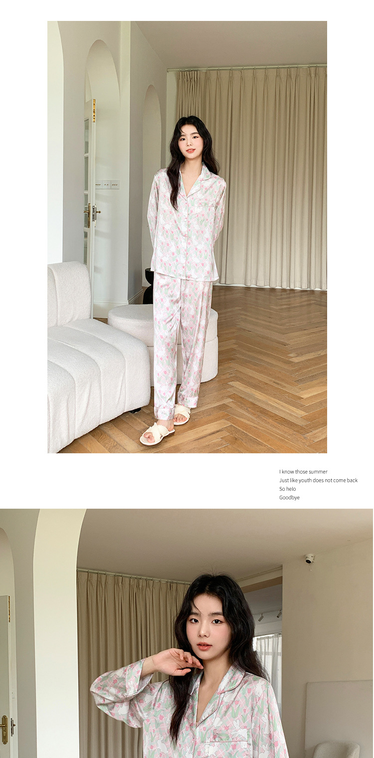 튤립 토끼 잠옷 여성 달콤한 소녀 얼음 실크 새틴 가정 옷 긴 소매 2023 봄 여름 얇은