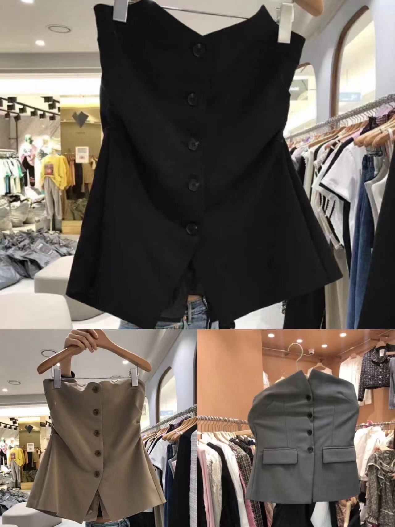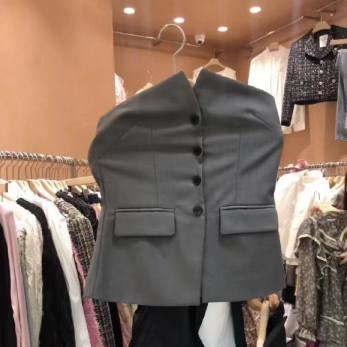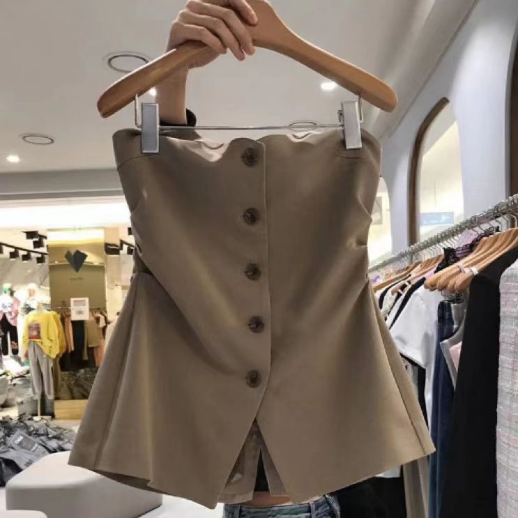 여아 2025 여름 신상 정장 스타일 튜브탑 슬림핏 레이어드 오프숄더 중대형 어린이용 튜브탑 조끼 트렌디스토어 가기