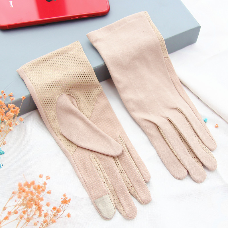 여름 자외선 차단제 면 땀 흡수성 통기성 터치 스크린 자외선 차단 장갑 미끄럼 방지 풀 핑거 장갑