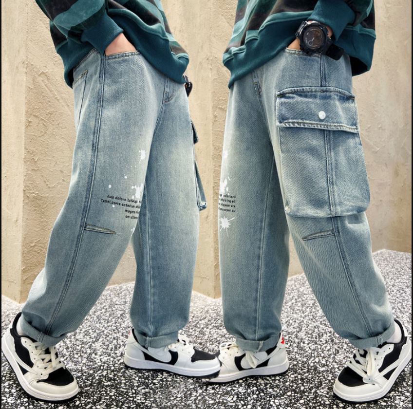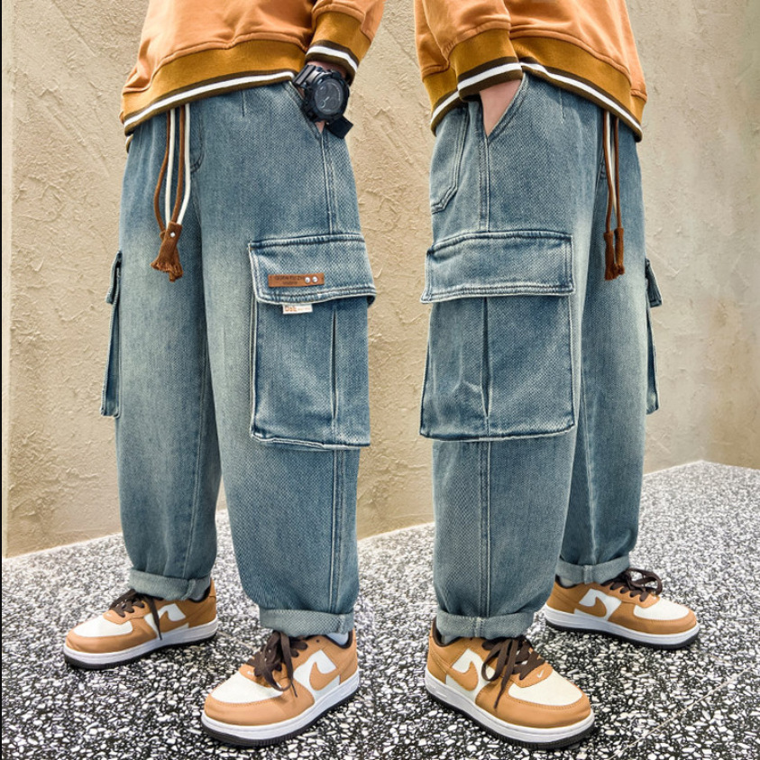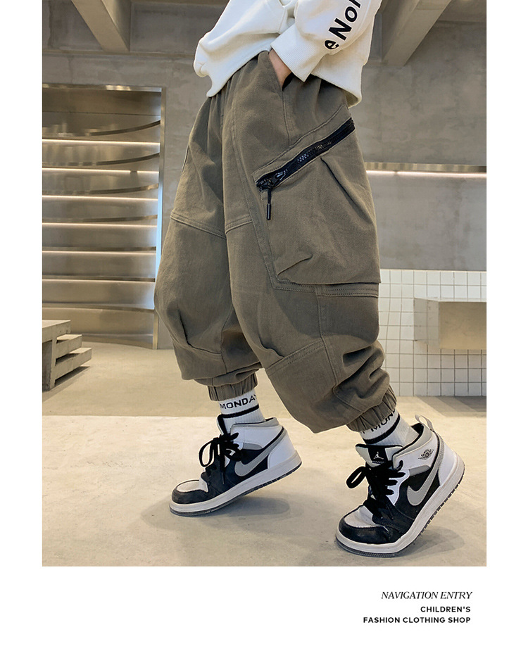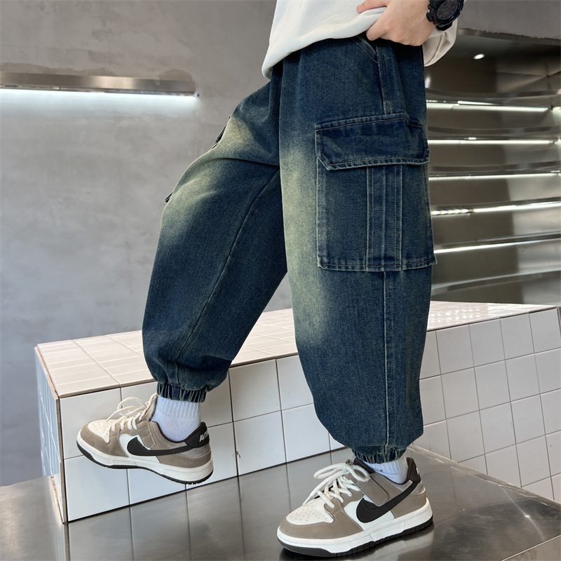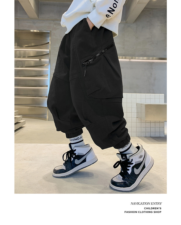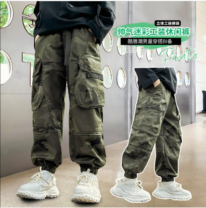 남아 바지 봄과 가을 2023 새로운 어린이 바지 봄 Zhongda 어린이 바지 느슨한 발가락 길이 바지스토어 가기