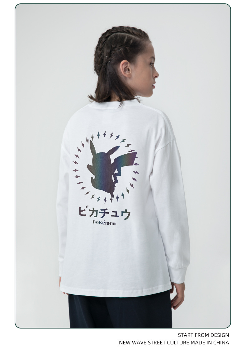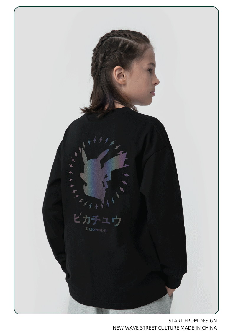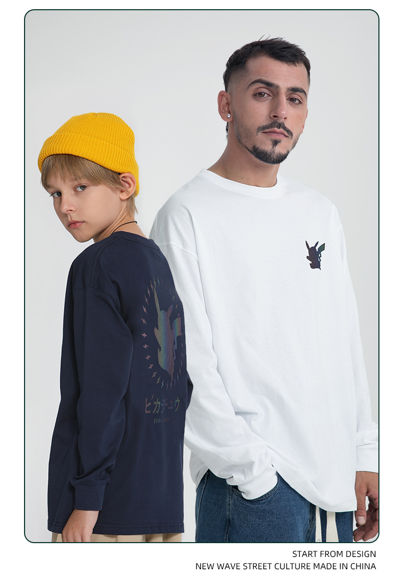 일본 아동복 2024 가을 새 소년 긴팔 다채로운 포켓몬 티셔츠 중소 어린이 만화 부모-자식 티셔츠스토어 가기