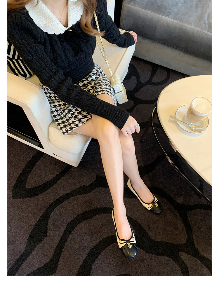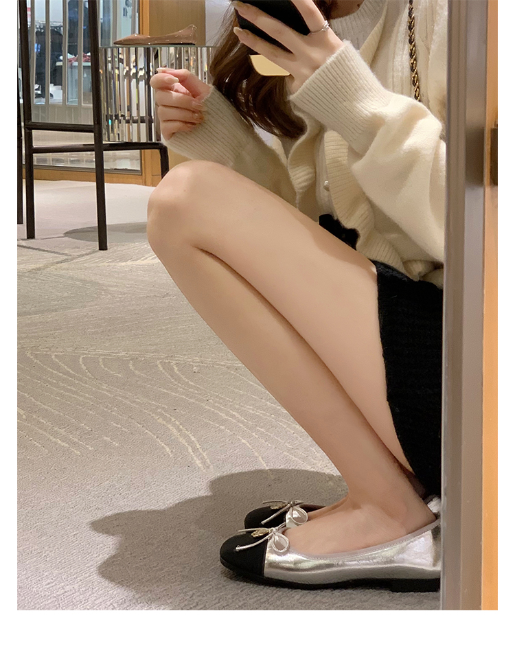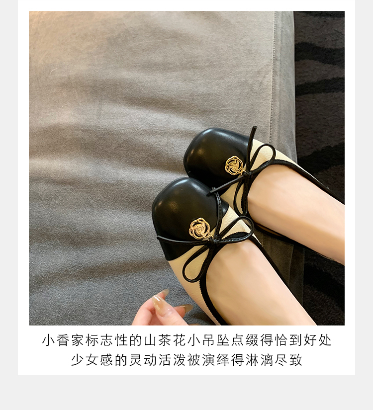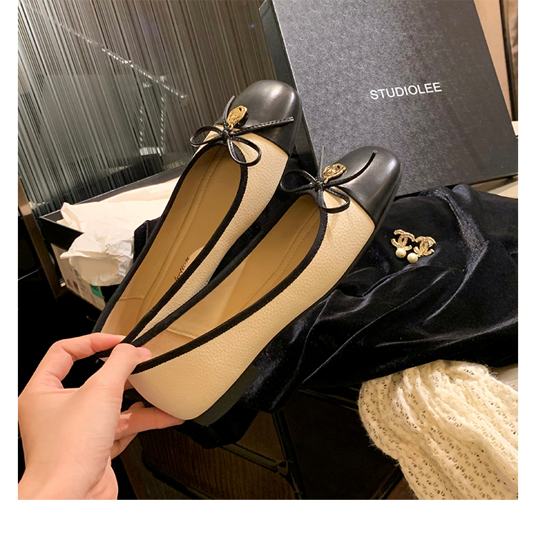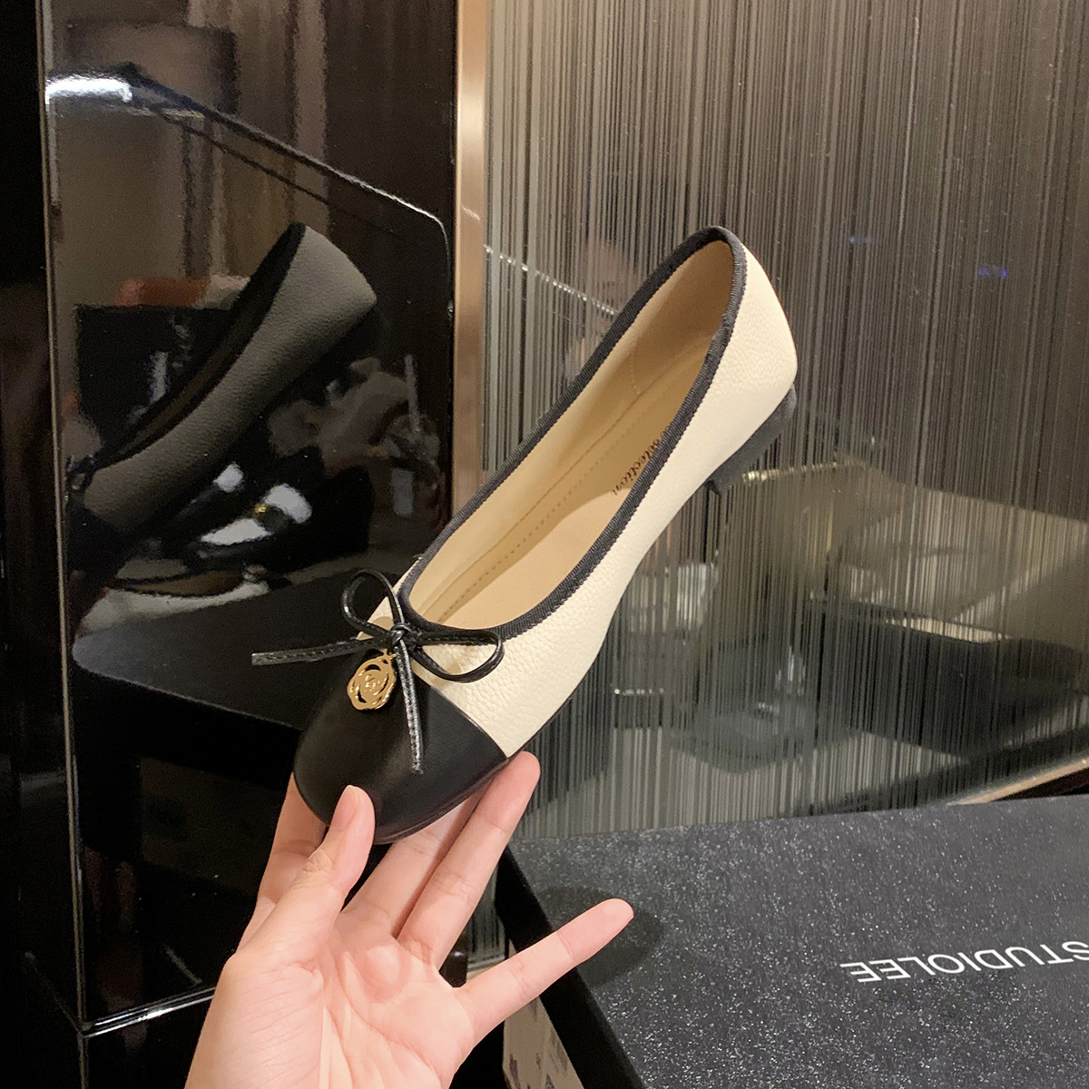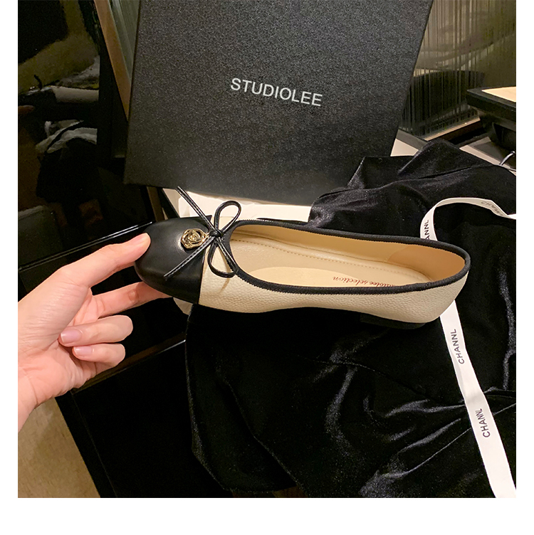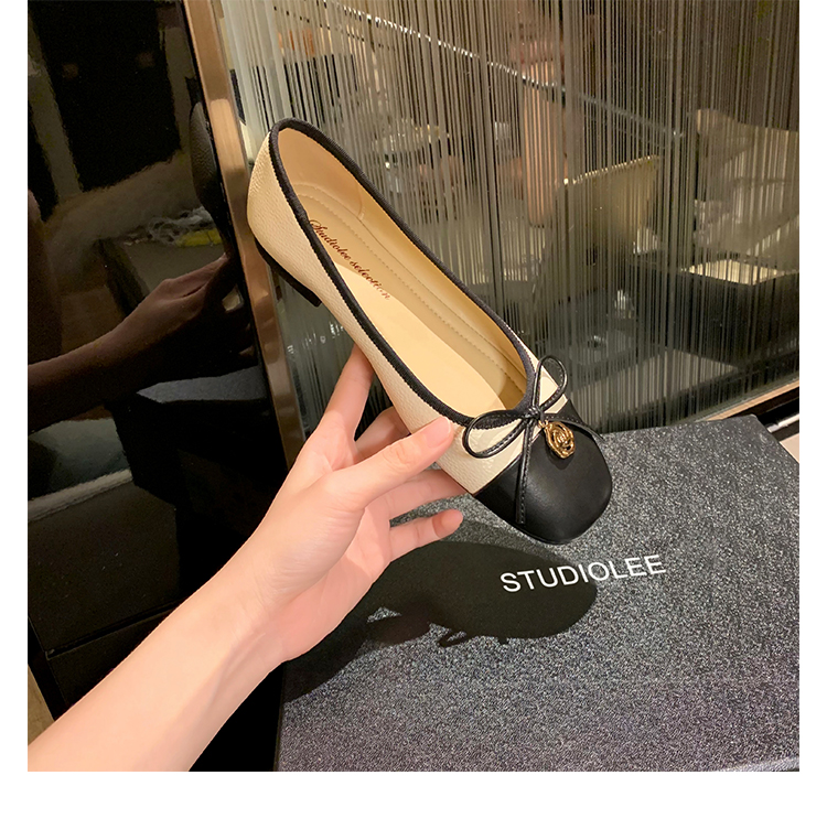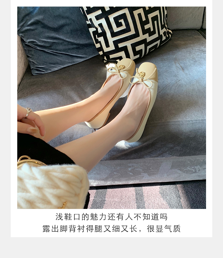 재고 있음 포도색 스몰 프렌치 스타일 사각굽 두꺼운 굽 리본 장식 얕은 굽 금색 배색 단화 2025 봄 가을 신발