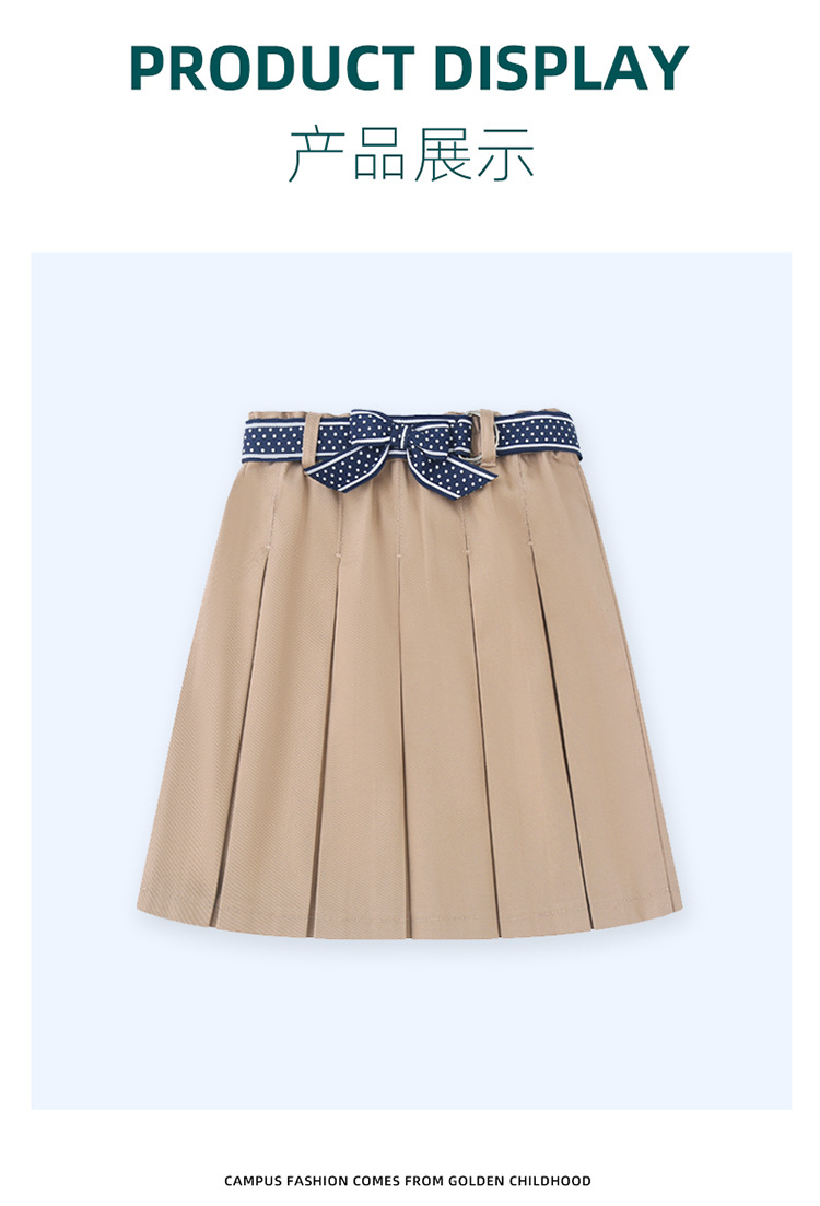 어린이와 소녀 카키색 진한 파란색 네이비 블루 주름 치마 활 벨트 스커트 학생 공연 교복 스커트스토어 가기