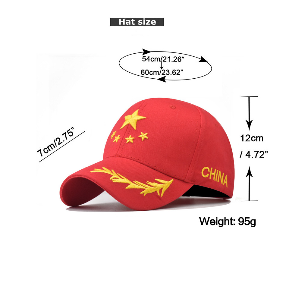중국 국기 모자 남녀 선수 훈련 대회 야구 모자 코치 자외선 차단제 중국 자수