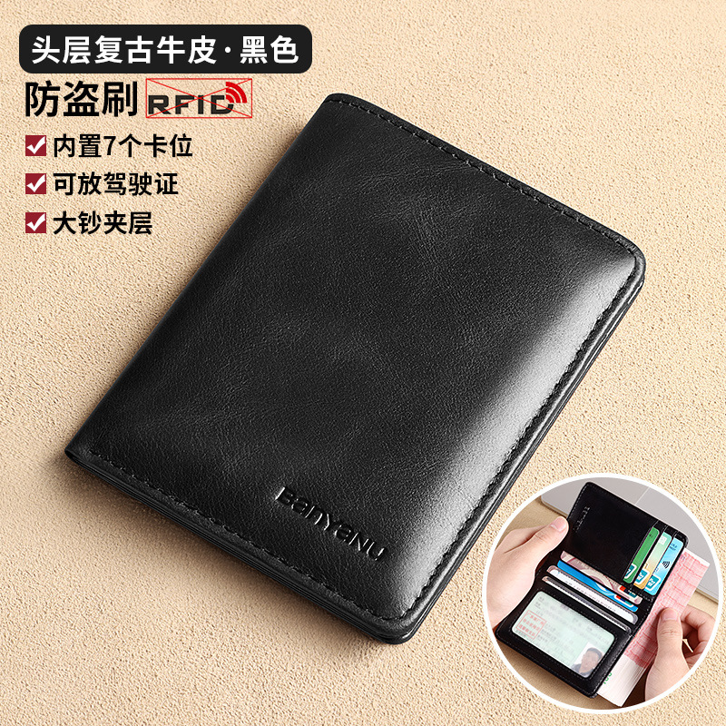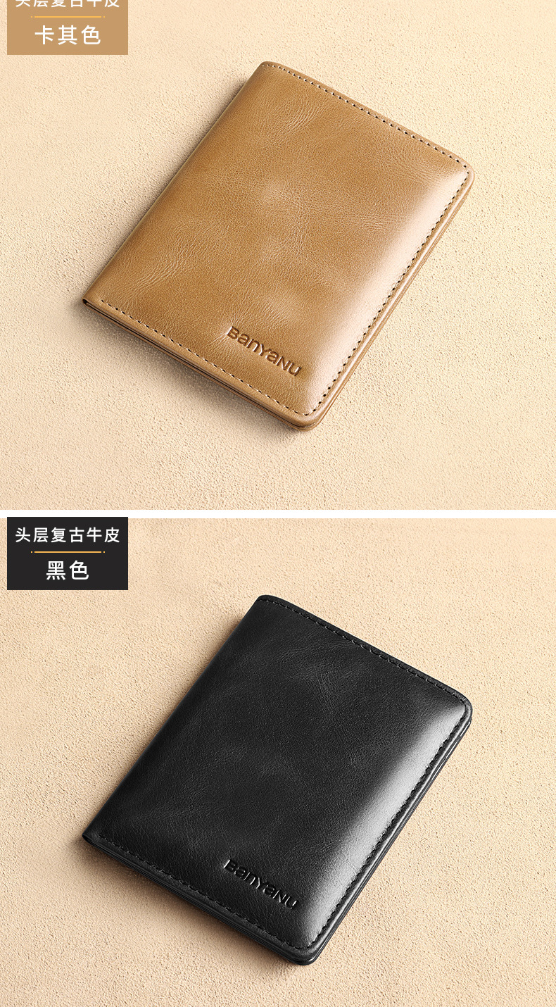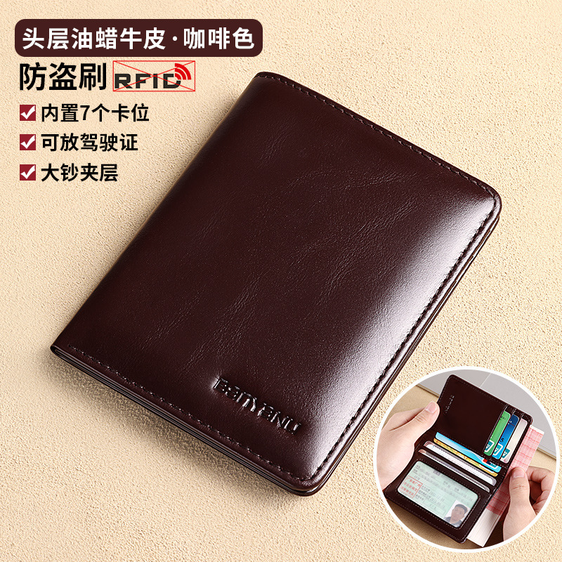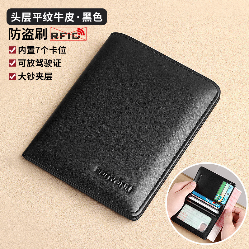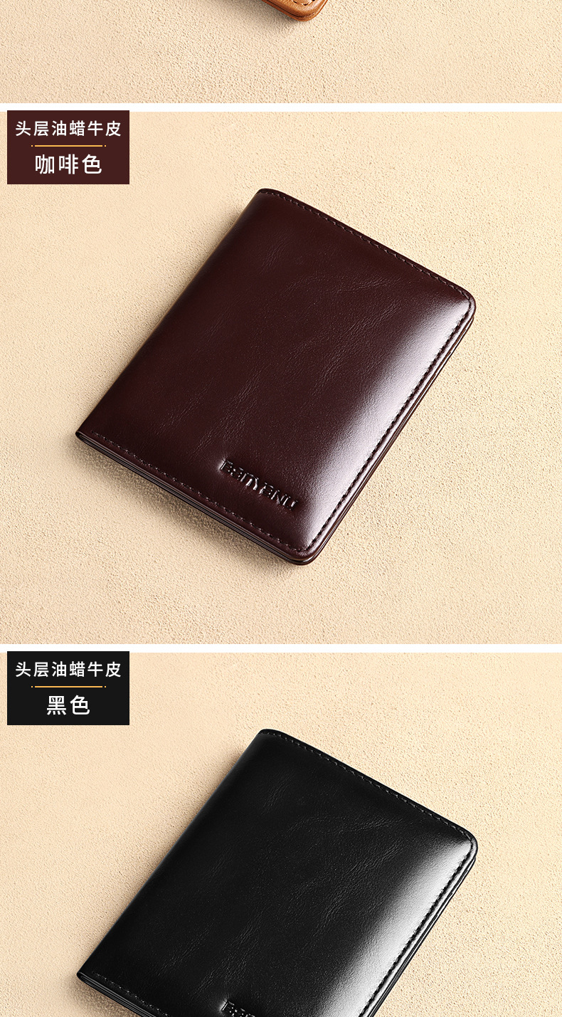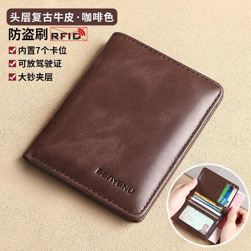 국경 간 광저우 가죽 공장 지갑 남성용 정품 가죽 세로 초박형 첫 번째 레이어 소 가죽 단순 짧은 운전 면허증 카드 가방스토어 가기