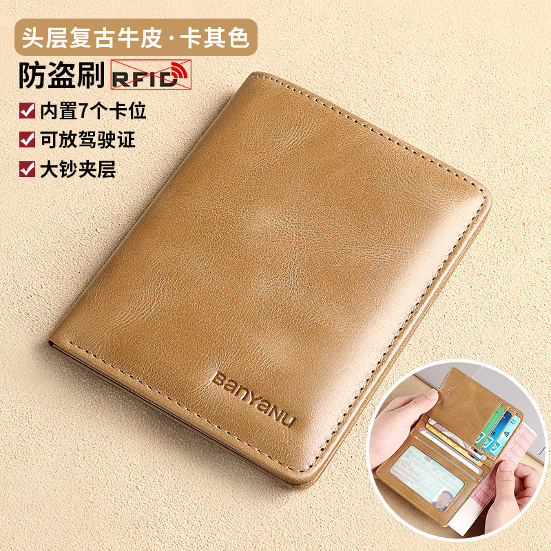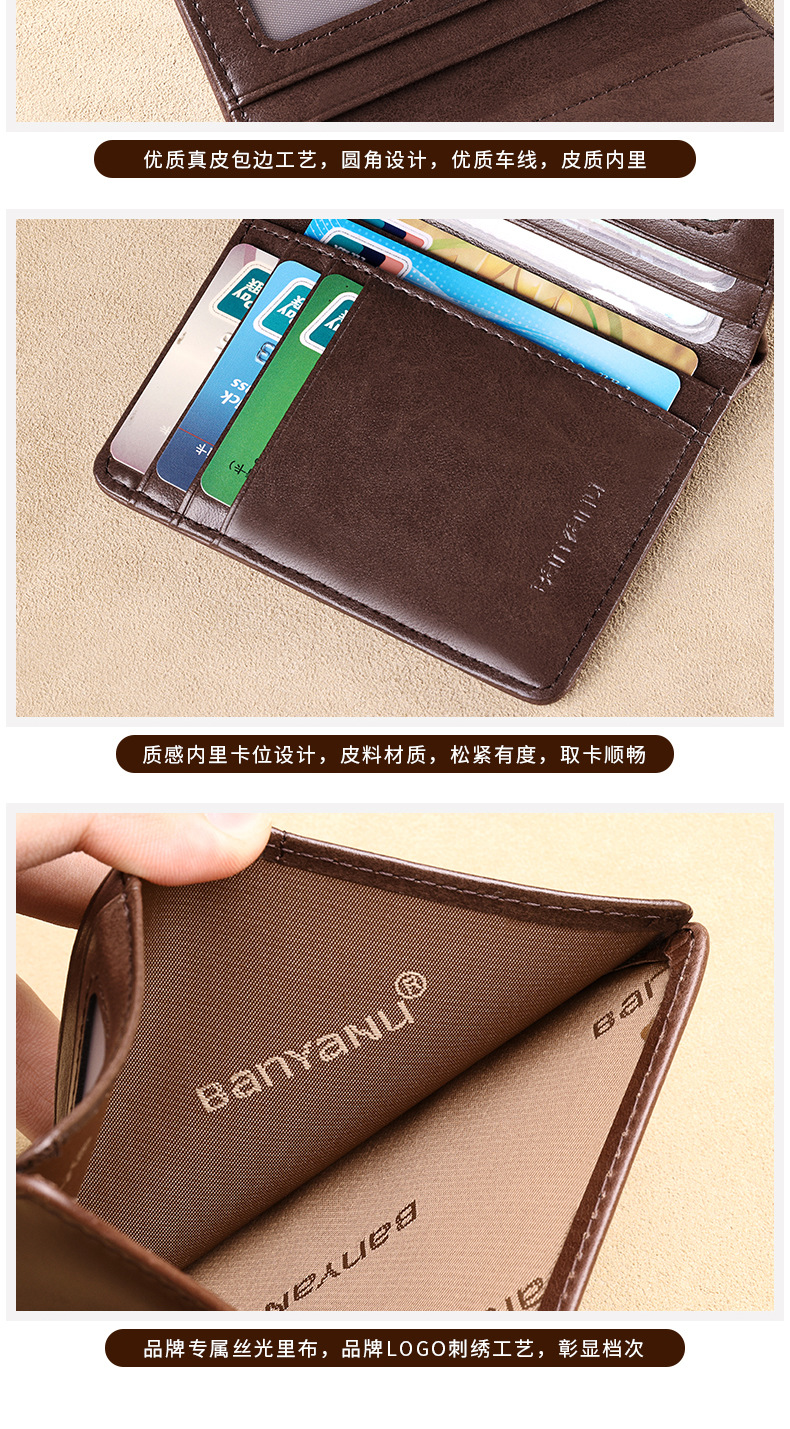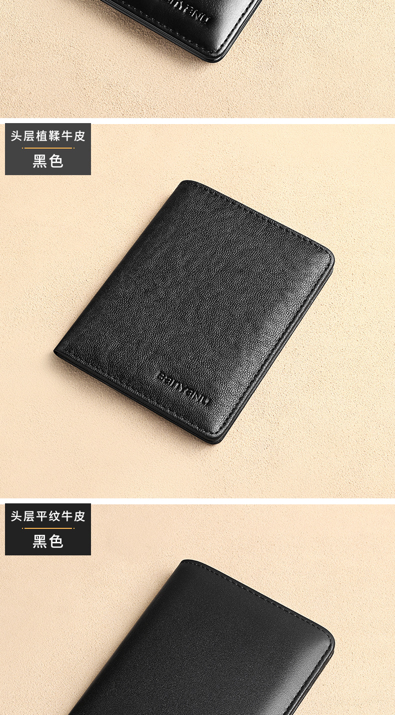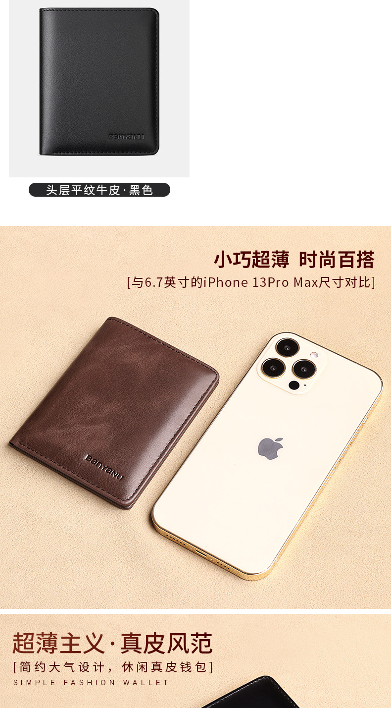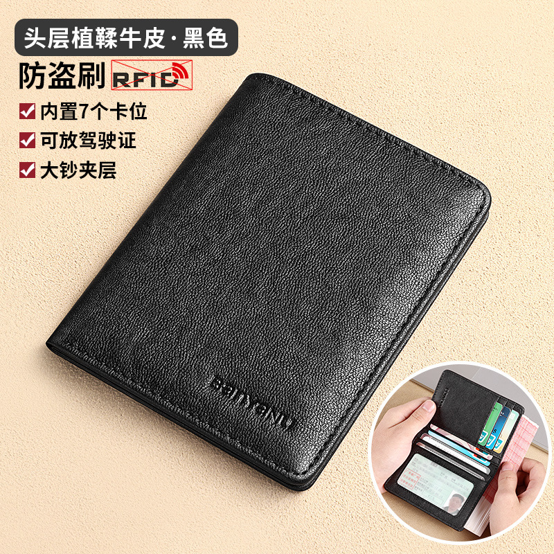 국경 간 광저우 가죽 공장 지갑 남성용 정품 가죽 세로 초박형 첫 번째 레이어 소 가죽 단순 짧은 운전 면허증 카드 가방스토어 가기