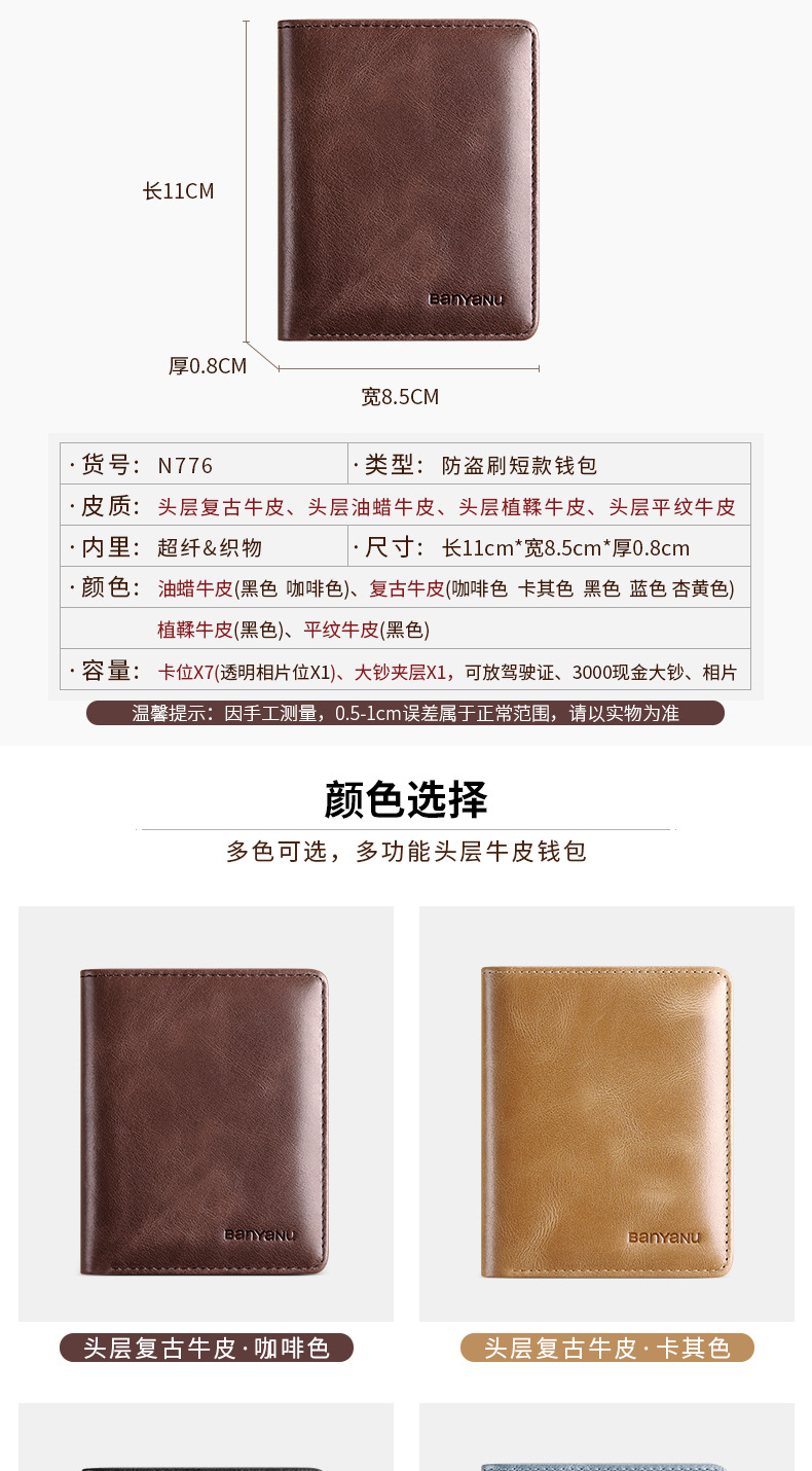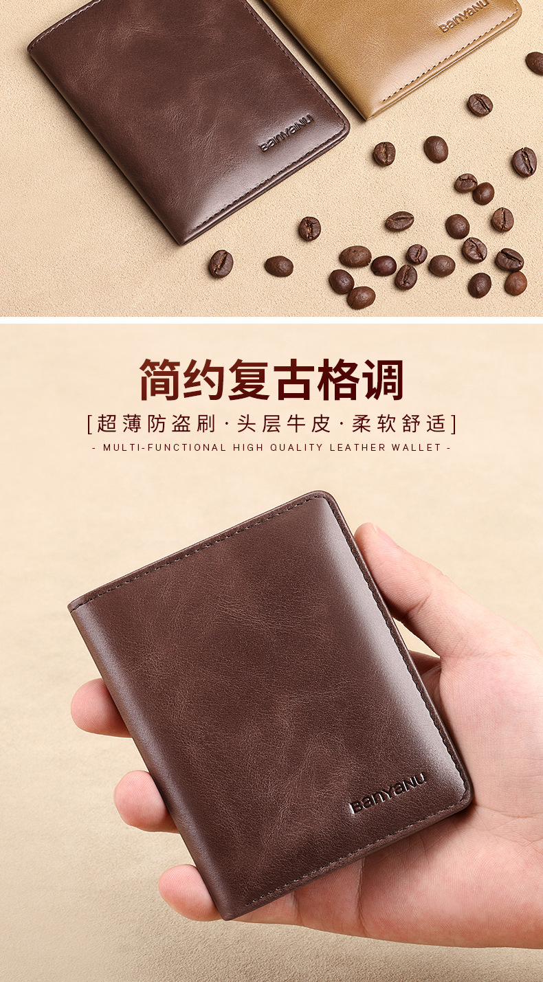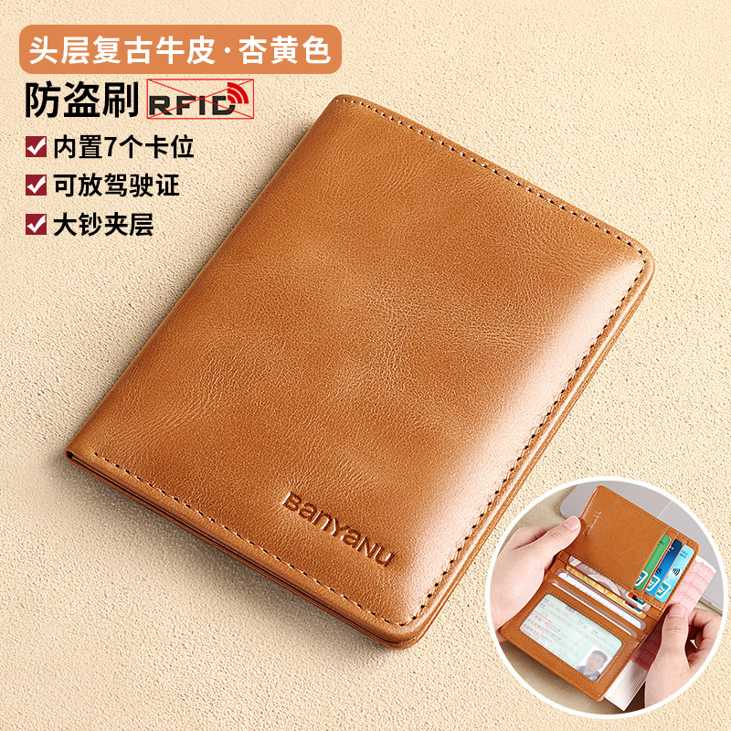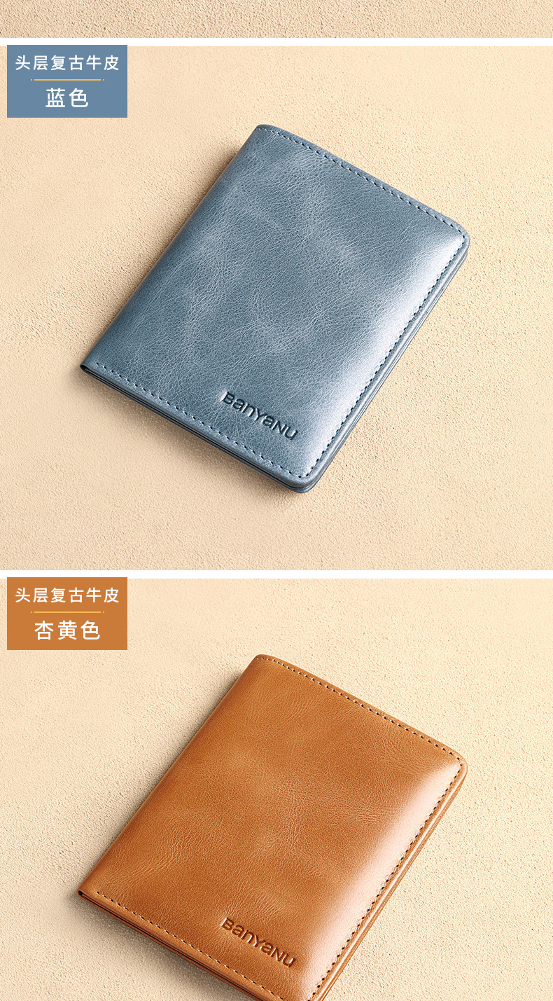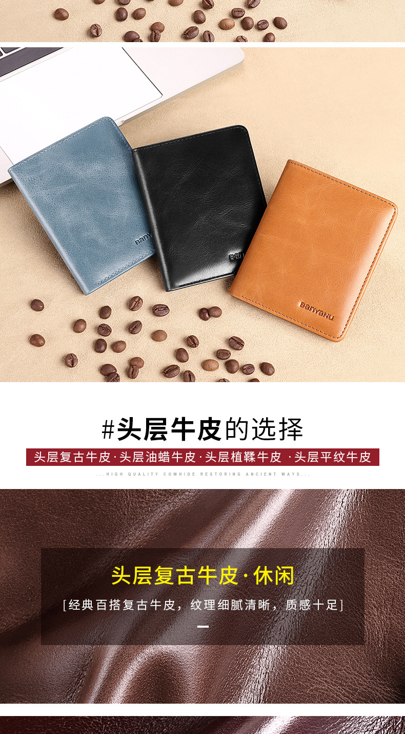 국경 간 광저우 가죽 공장 지갑 남성용 정품 가죽 세로 초박형 첫 번째 레이어 소 가죽 단순 짧은 운전 면허증 카드 가방스토어 가기