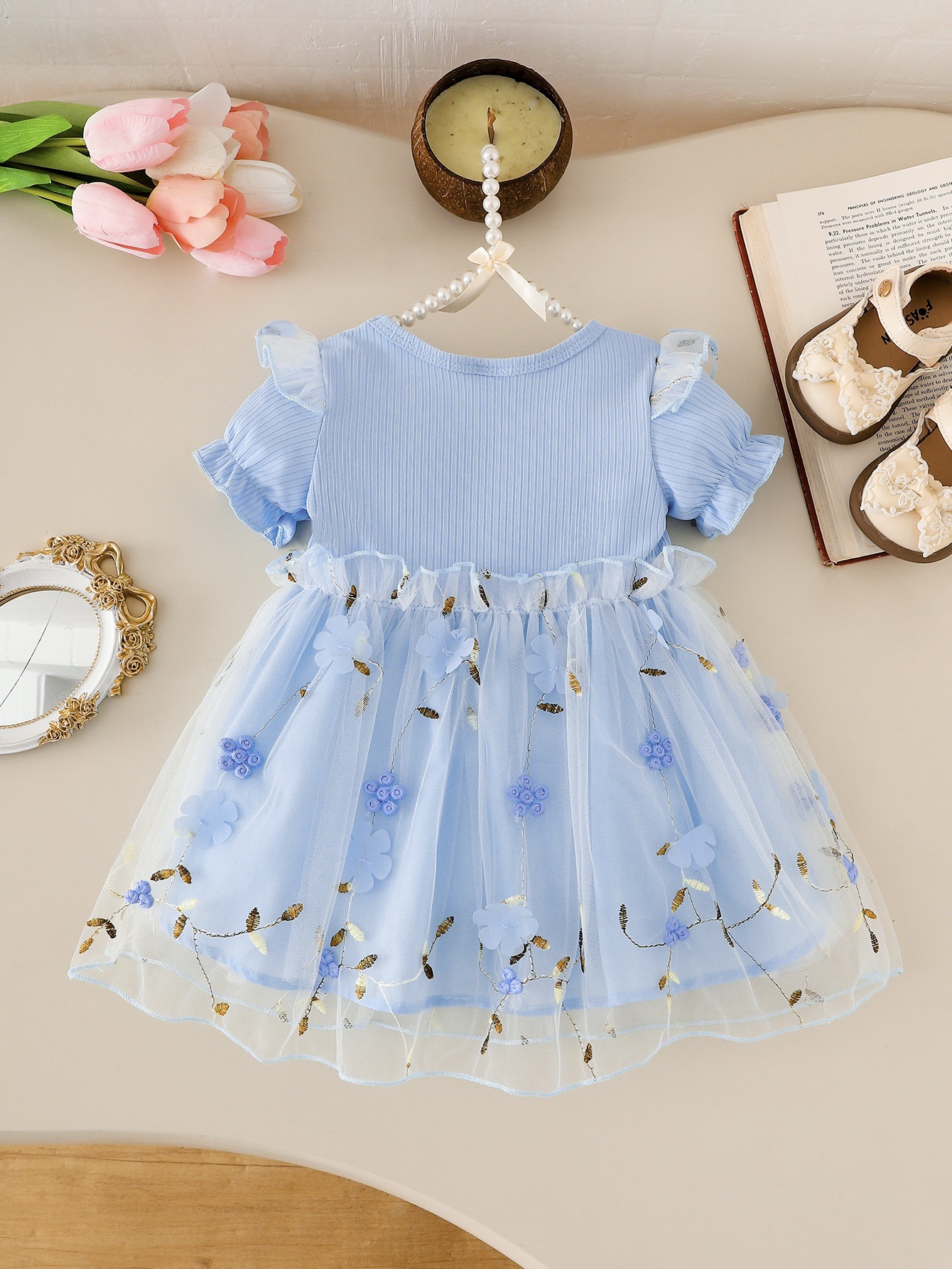 아동 의류 여름 유럽과 미국 소녀 드레스 새로운 아기 수 놓은 메쉬 어린이 스커트 드롭 배송