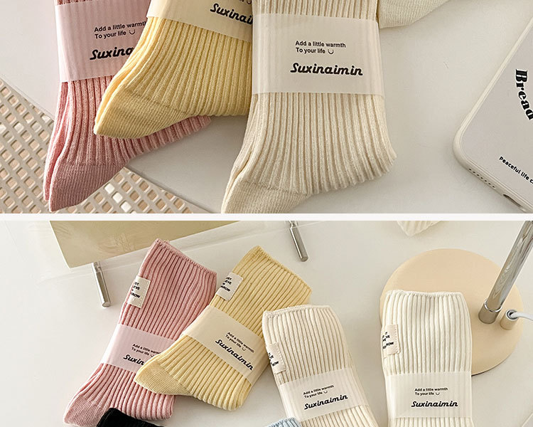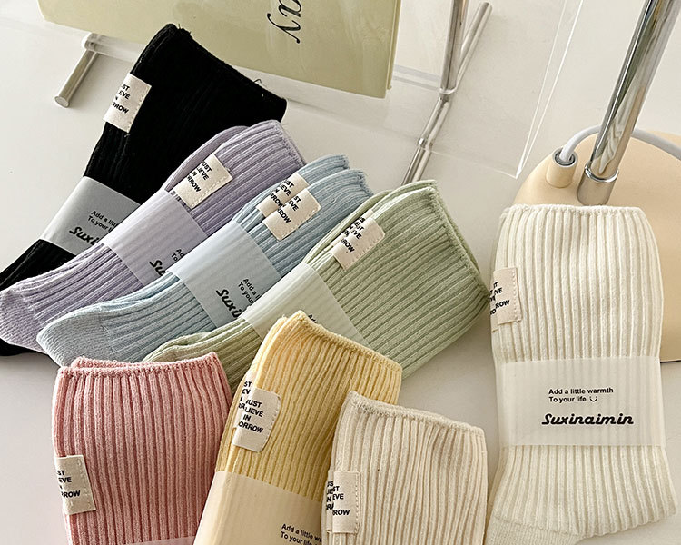 봄 여름 신상 여성용 양말, 봄 가을 면 양말, 인스타 인기 적외선 방지 천 라벨 스포츠 롱 양말스토어 가기