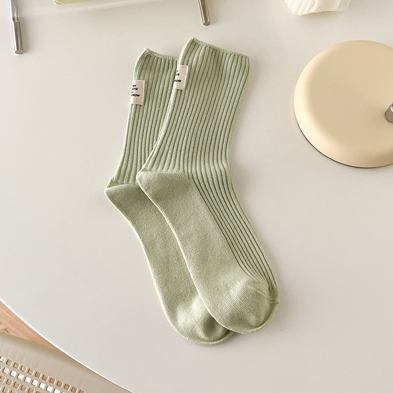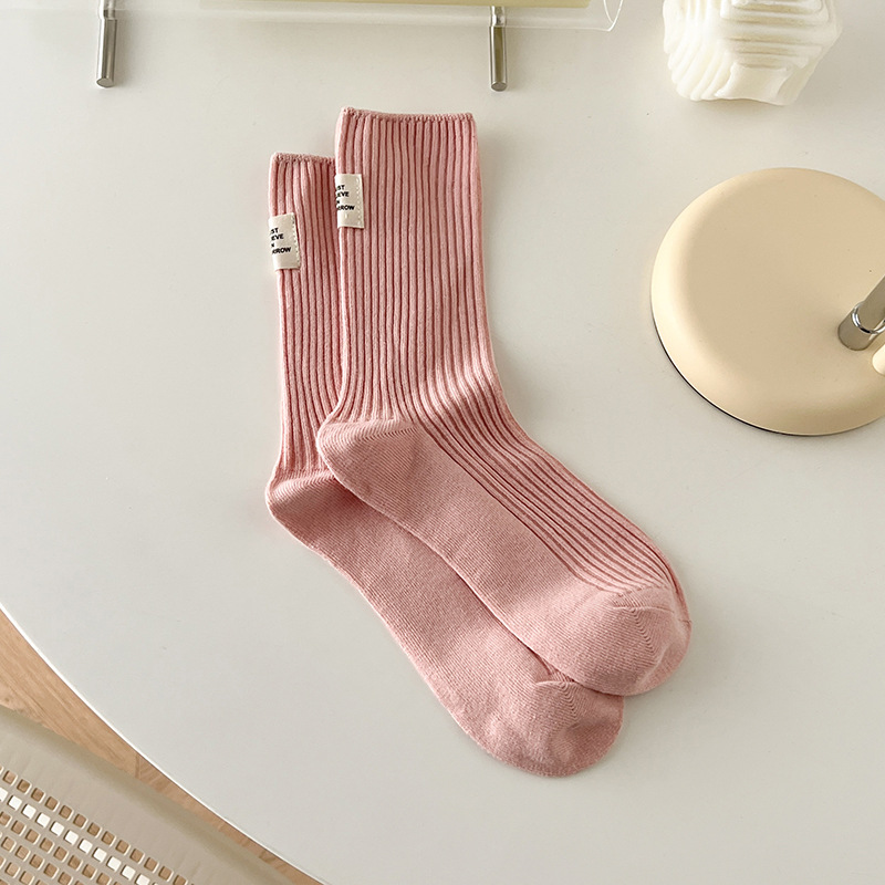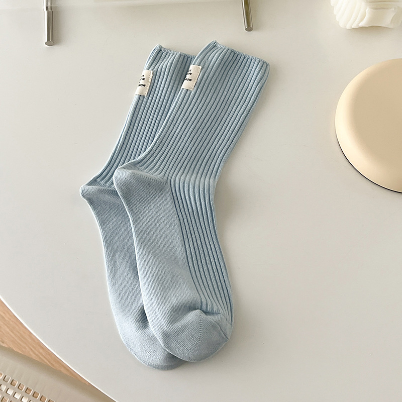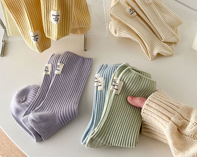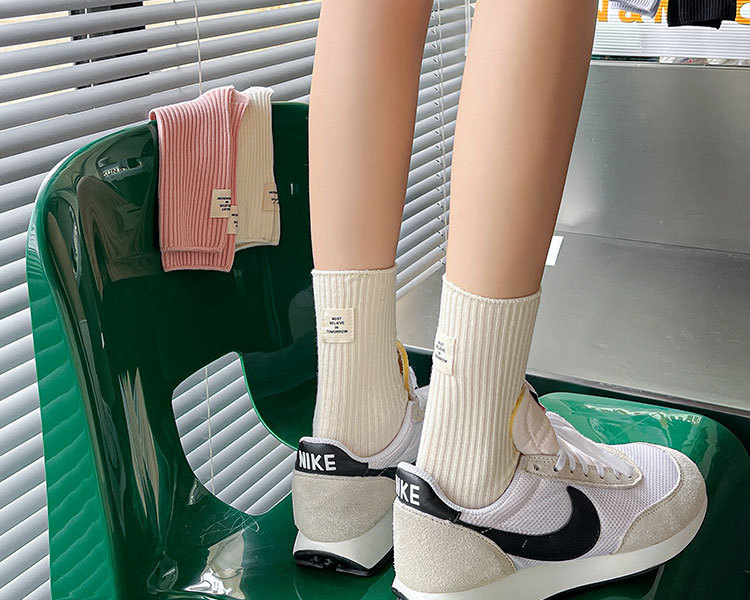 봄 여름 신상 여성용 양말, 봄 가을 면 양말, 인스타 인기 적외선 방지 천 라벨 스포츠 롱 양말