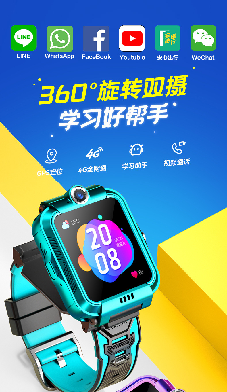 4G 어린이 전화 홍콩, 마카오 및 대만 시계 초등학생 스마트 콜 방수 포지셔닝 시계 크로스 보더 해외 에디션스토어 가기