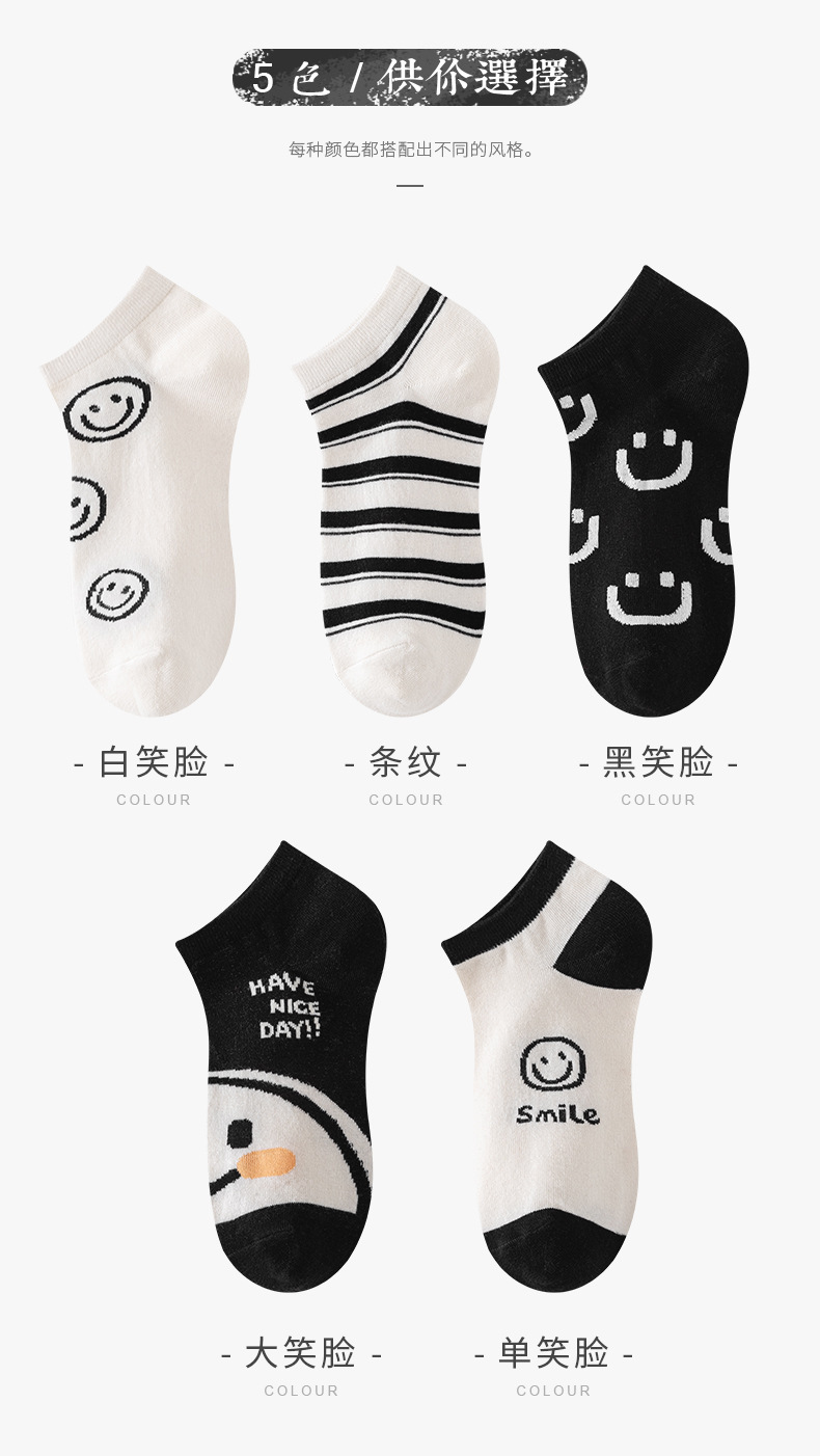 새로운 흑백 스마일 페이스 양말 여성 스포츠 n 조수 짧은 양말 봄과 가을면 양말 만화 모든 경기 그물 인기 조수 양말 얇은스토어 가기