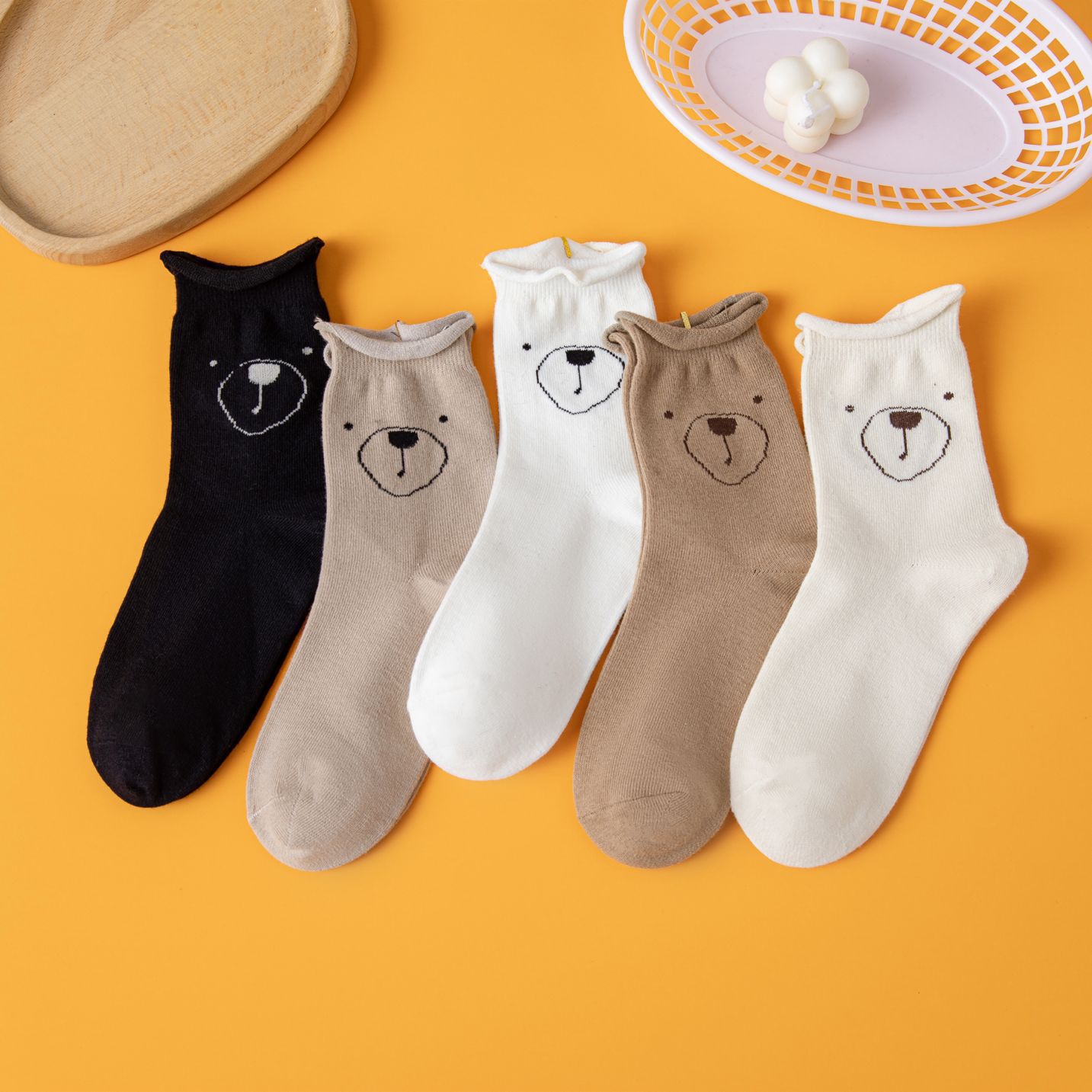 • 여자 양말 “10 색 흑백 소 곰]