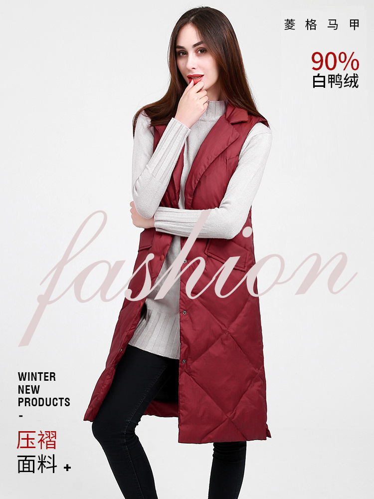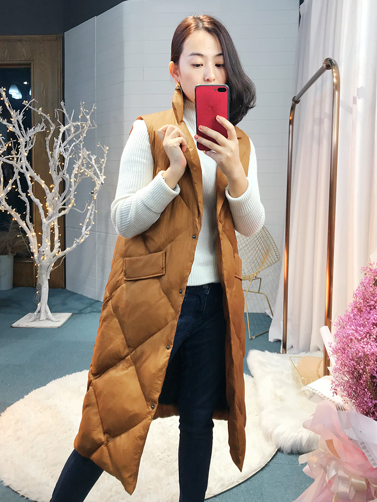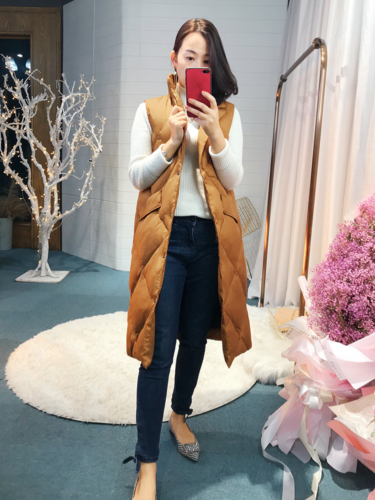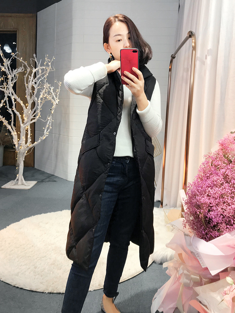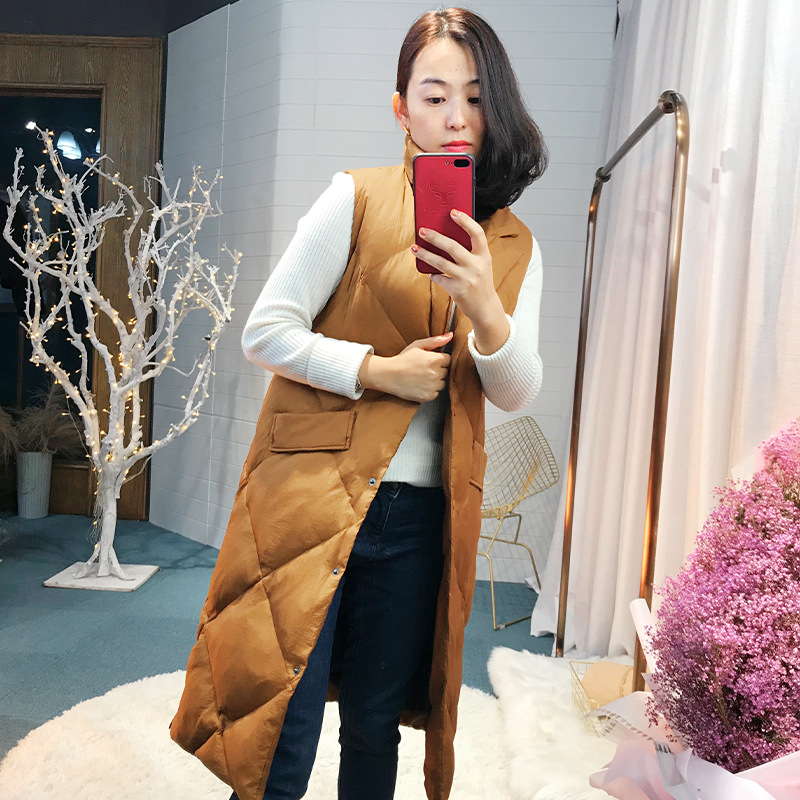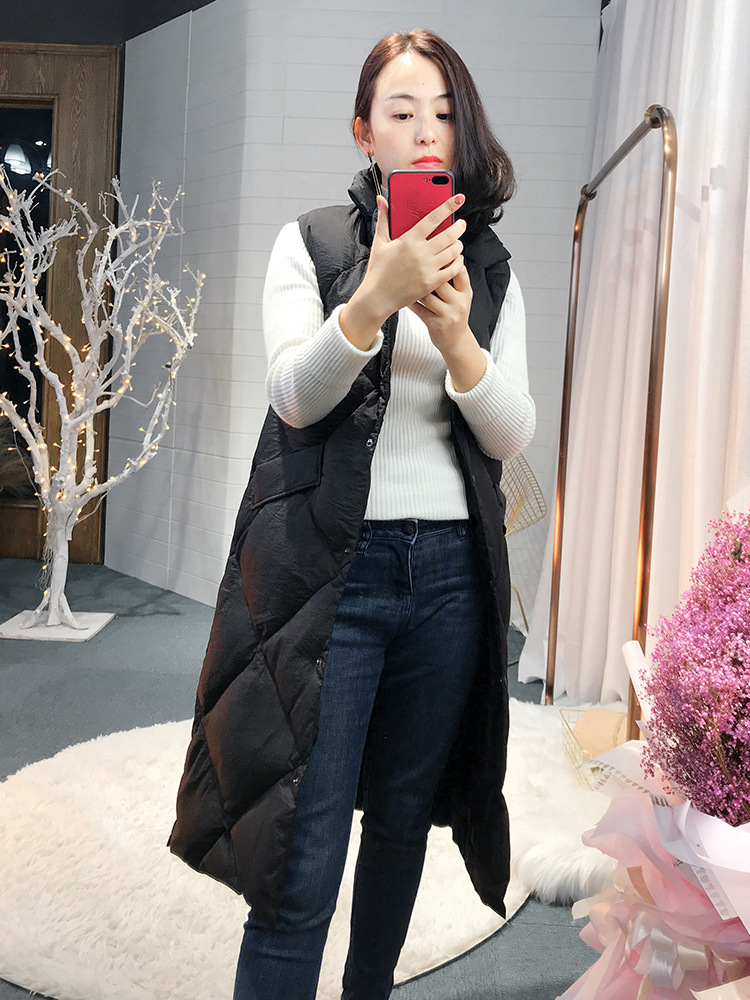 [라이브 스페셜 제공] 다이아몬드형 롱여성용 조끼 90 벨벳 어머니의 옷깃 다운 재킷 조끼 슬림 재킷