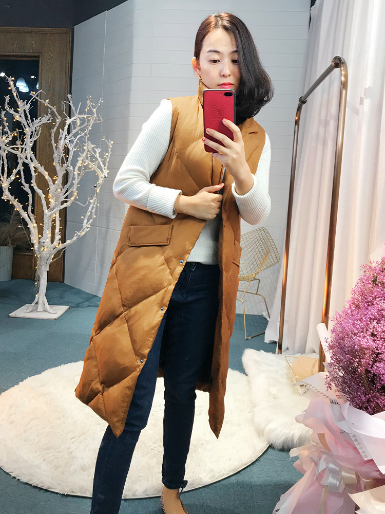 [라이브 스페셜 제공] 다이아몬드형 롱여성용 조끼 90 벨벳 어머니의 옷깃 다운 재킷 조끼 슬림 재킷스토어 가기