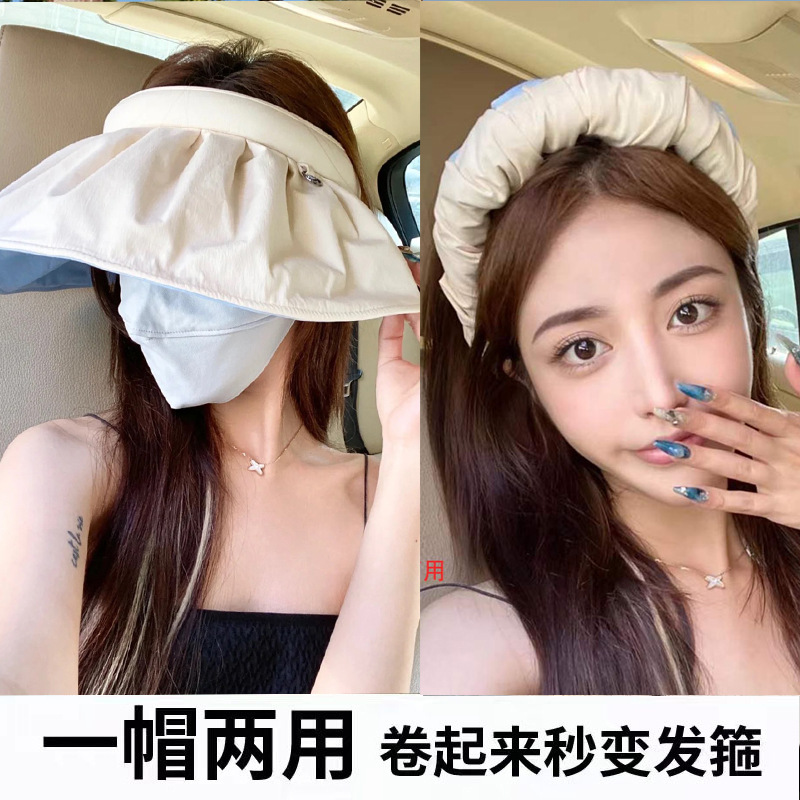 Upf50 + 자외선 차단 쉘 선크림 캡 여성용 여름 해변 얼굴 가리개 머리띠 차양 캡 빈 태양 모자스토어 가기