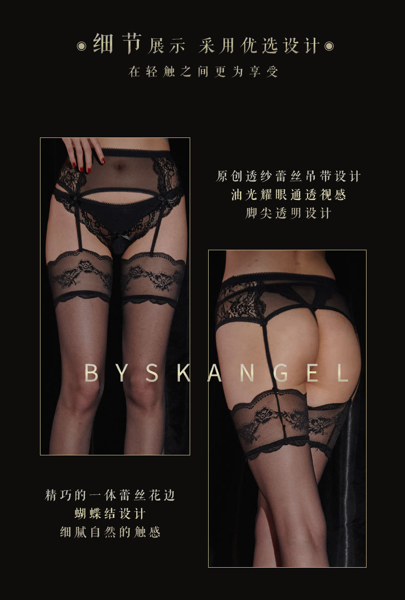 여성용 실크처럼 부드럽고 섹시한 레이스 일체형 슬립스타킹 탈착 불필요한 초박형 투명 블랙 스타킹 외출용으로 착용 가능