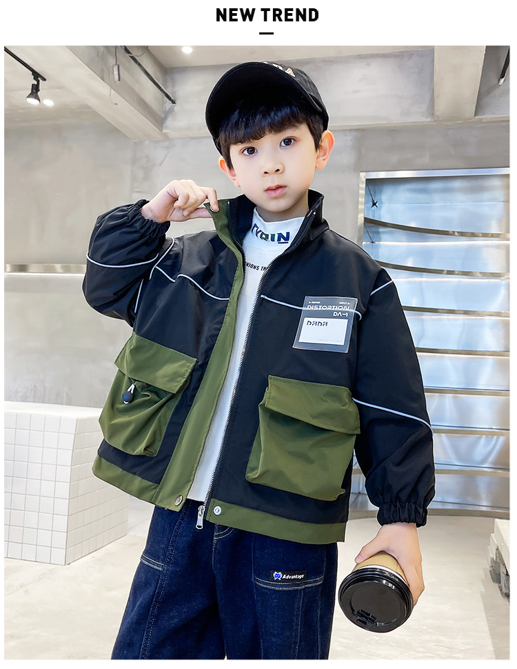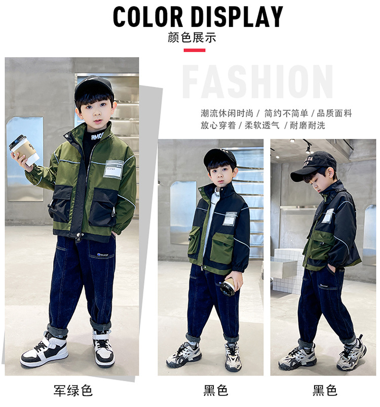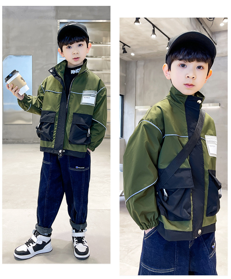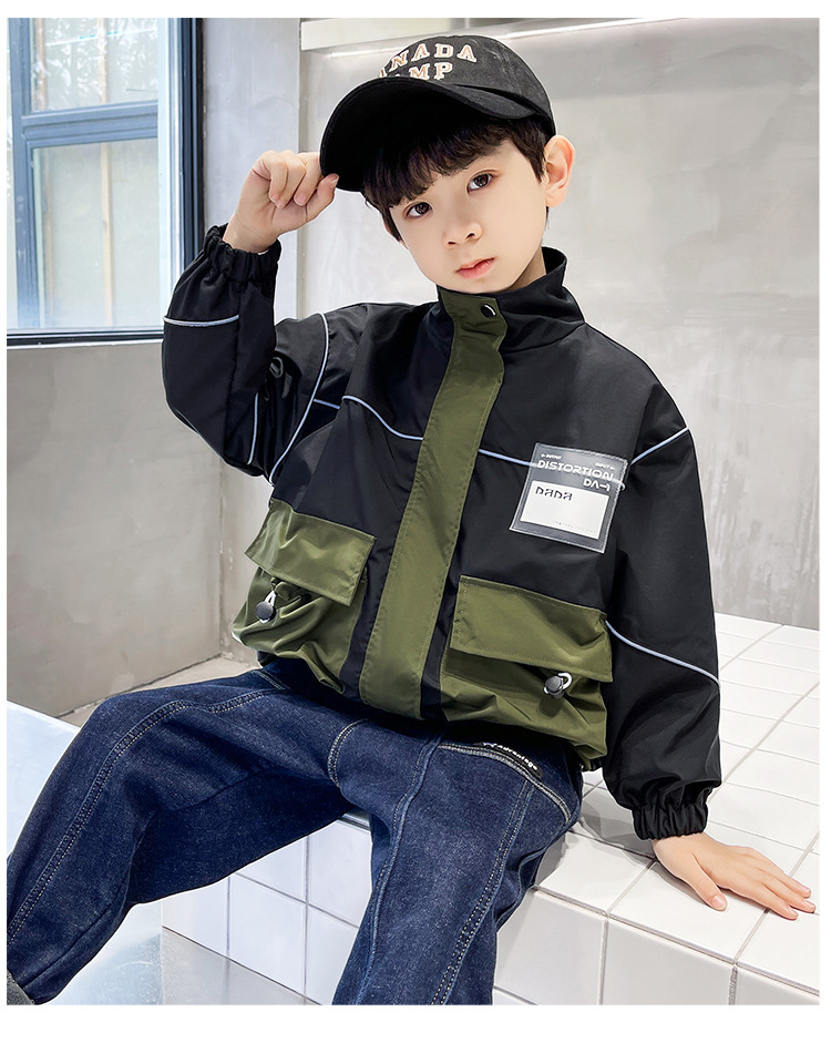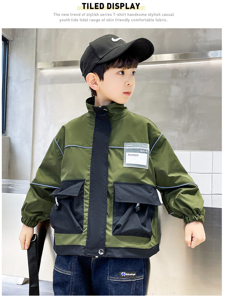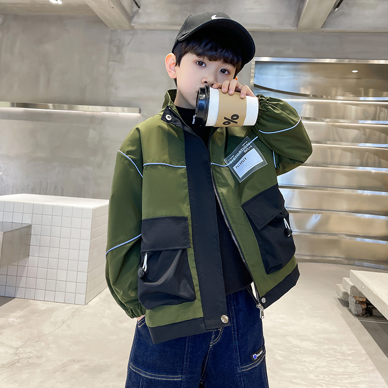 아동복 봄 의류 소년 편지 긴 소매 컬러 매칭 재킷 코트 2023 새로운 한국 아동 패션 코트 도매스토어 가기