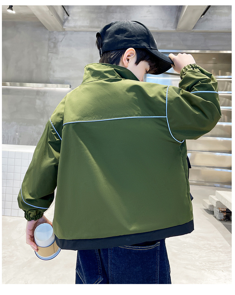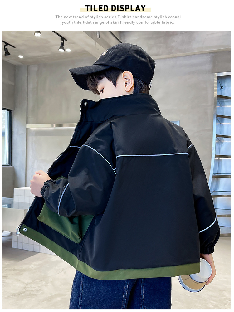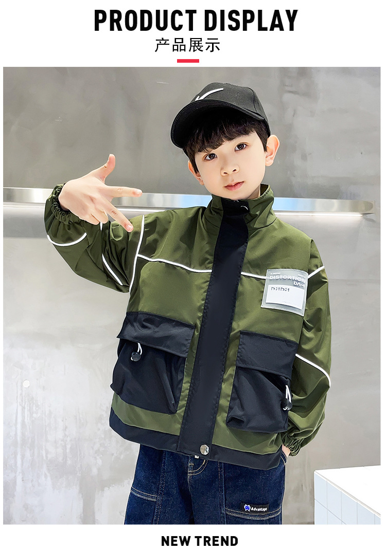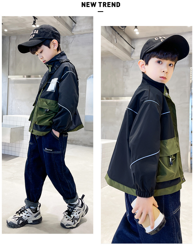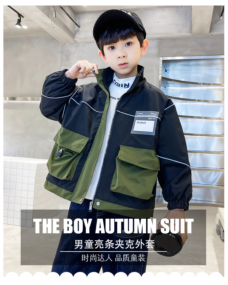 아동복 봄 의류 소년 편지 긴 소매 컬러 매칭 재킷 코트 2023 새로운 한국 아동 패션 코트 도매스토어 가기