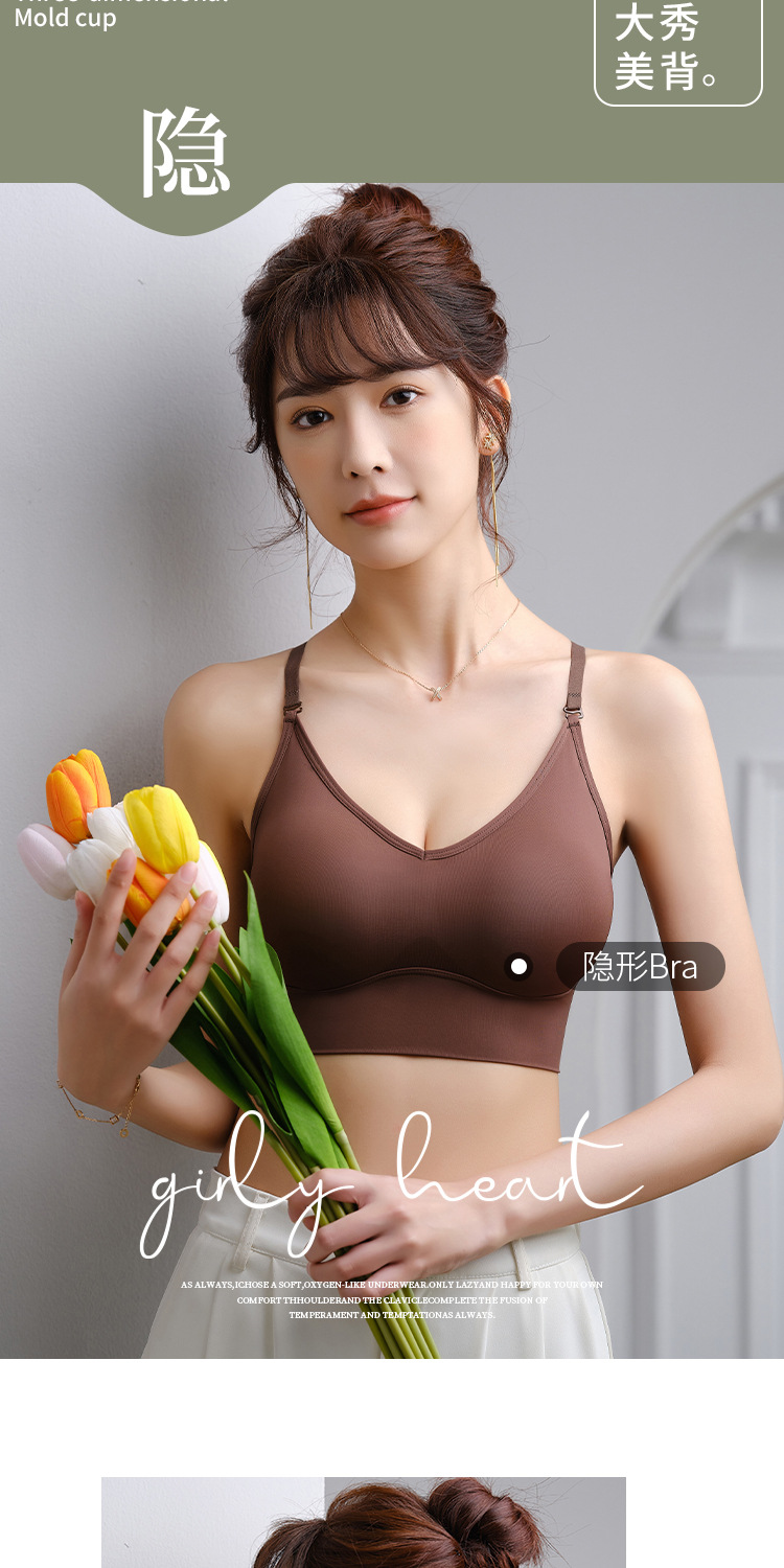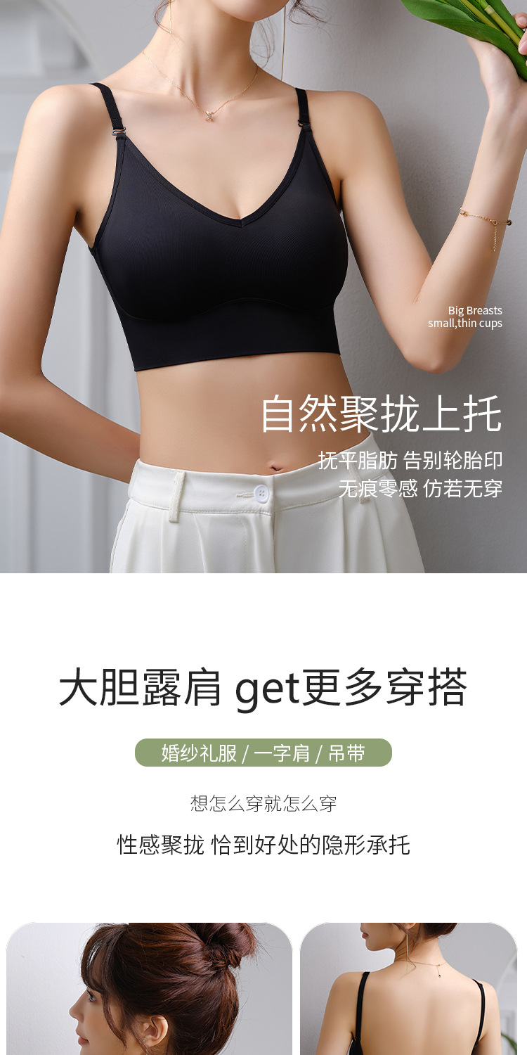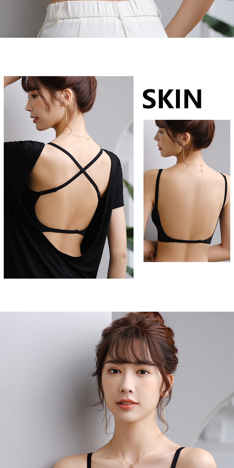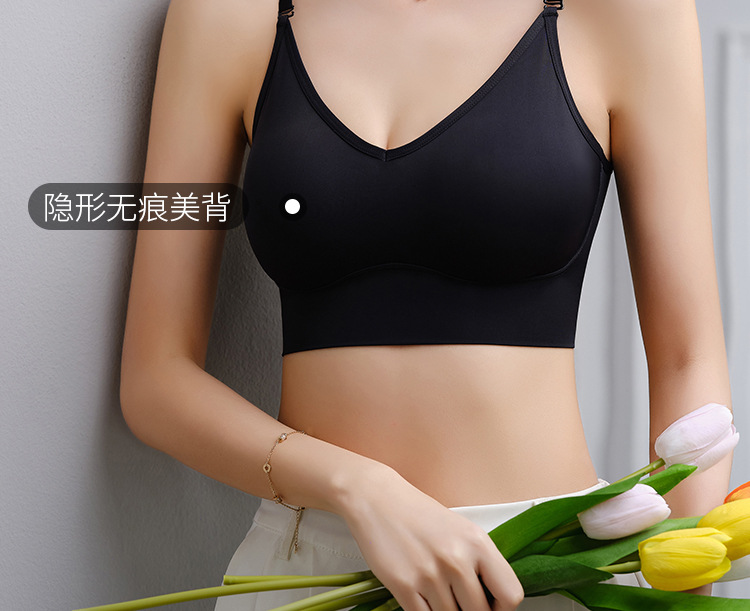 큰 등이없는 알몸 원활한 아이스 실크 아름다운 등 조절 가능한 어깨 스트랩 캐미솔 여성용 패딩 가슴 패드 대형 가슴 랩 여성용스토어 가기