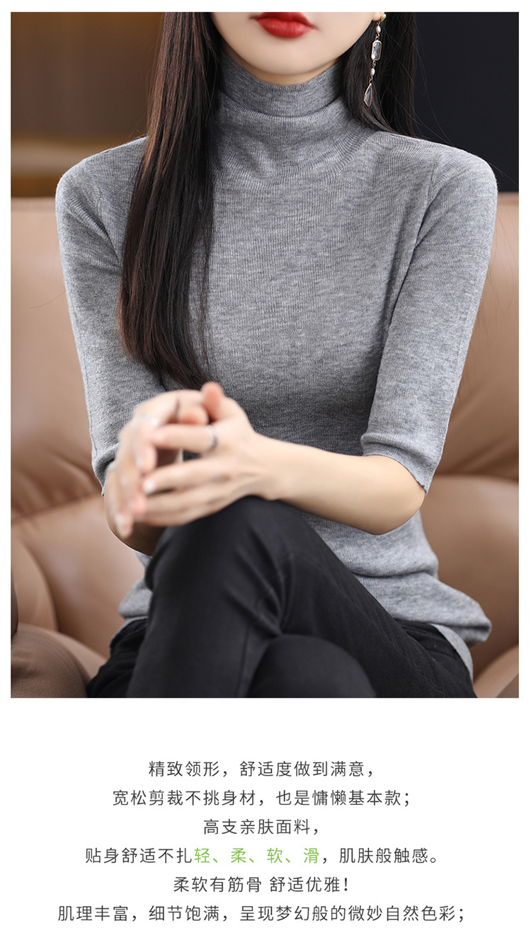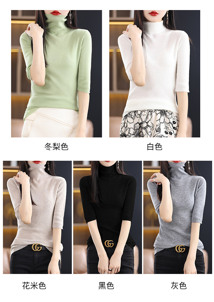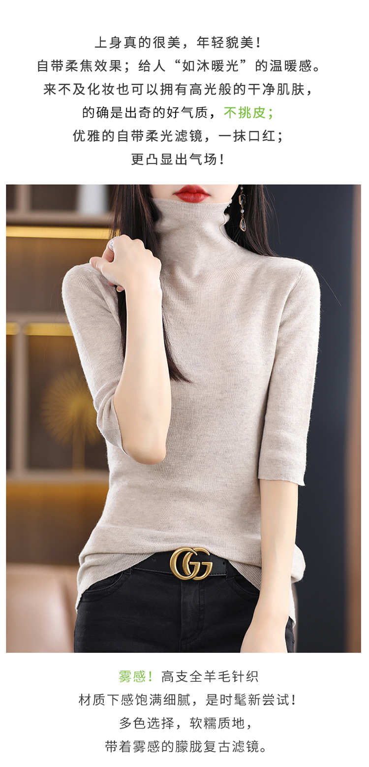 60 초미세 파일 칼라 베이스 셔츠 여성용 슬림핏 중소매 니트 스웨터 터틀넥 봄 뉴 울 반소매 스웨터스토어 가기