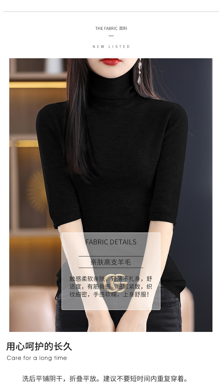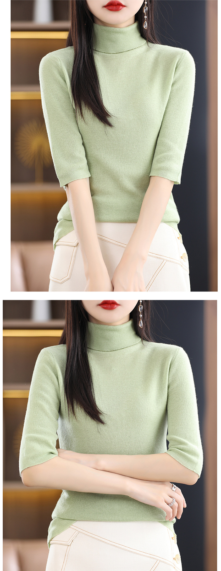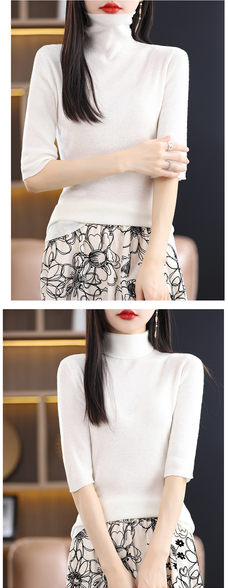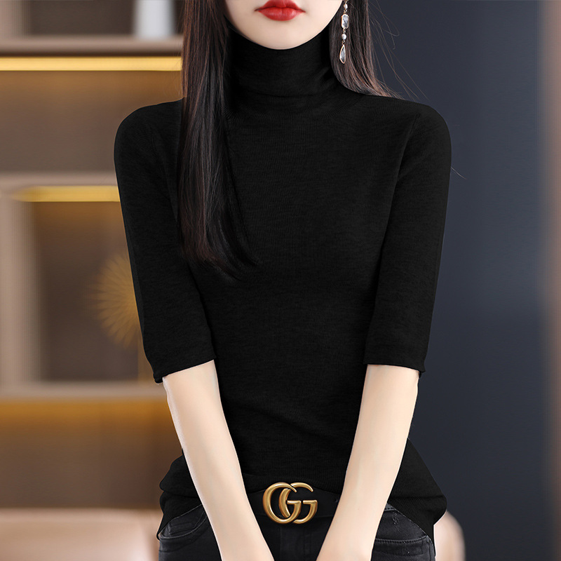 60 초미세 파일 칼라 베이스 셔츠 여성용 슬림핏 중소매 니트 스웨터 터틀넥 봄 뉴 울 반소매 스웨터