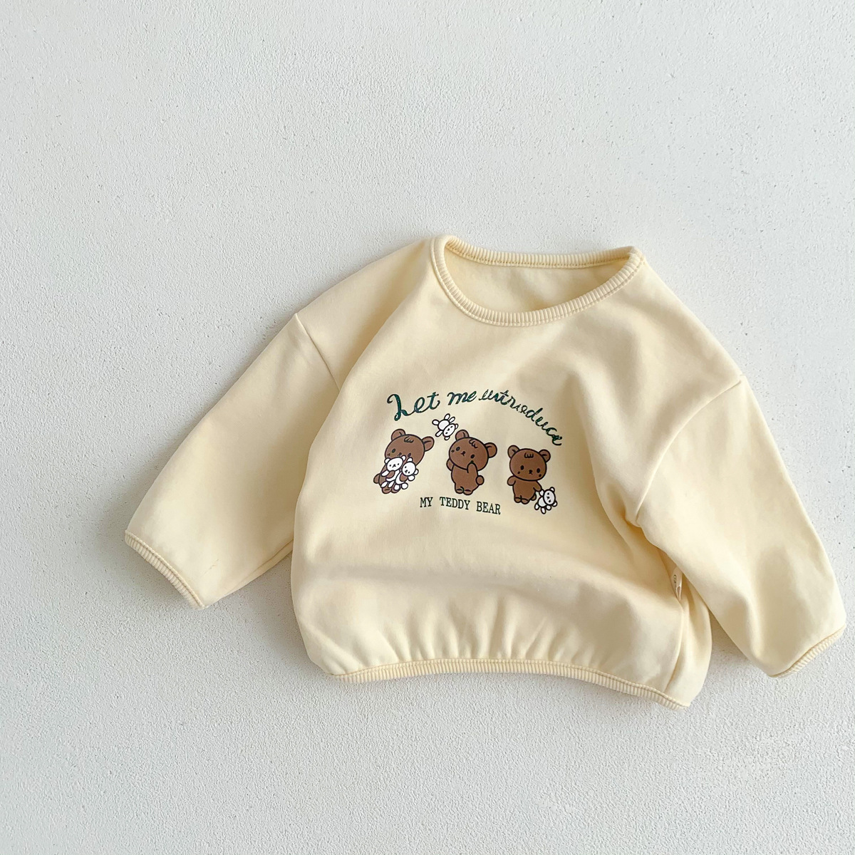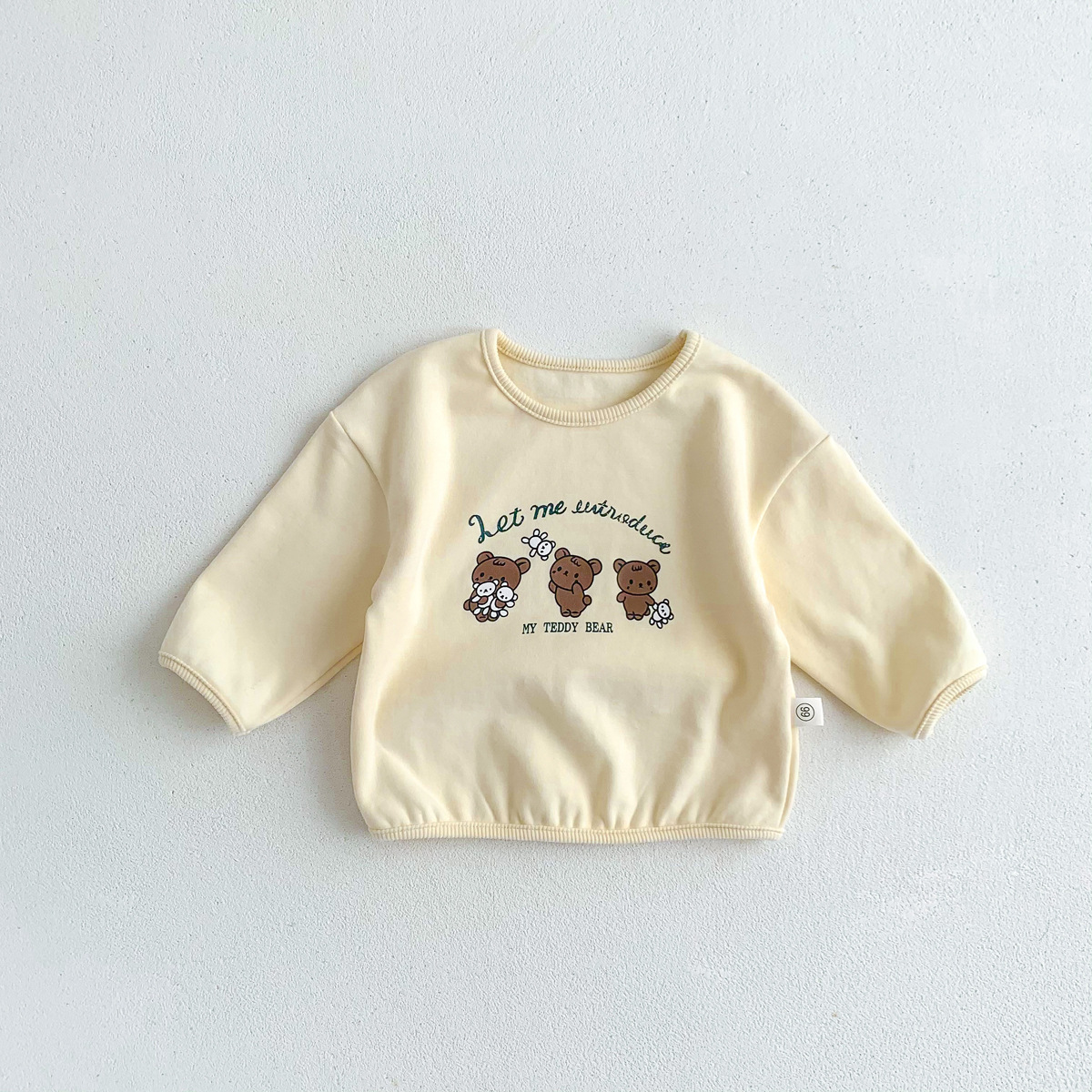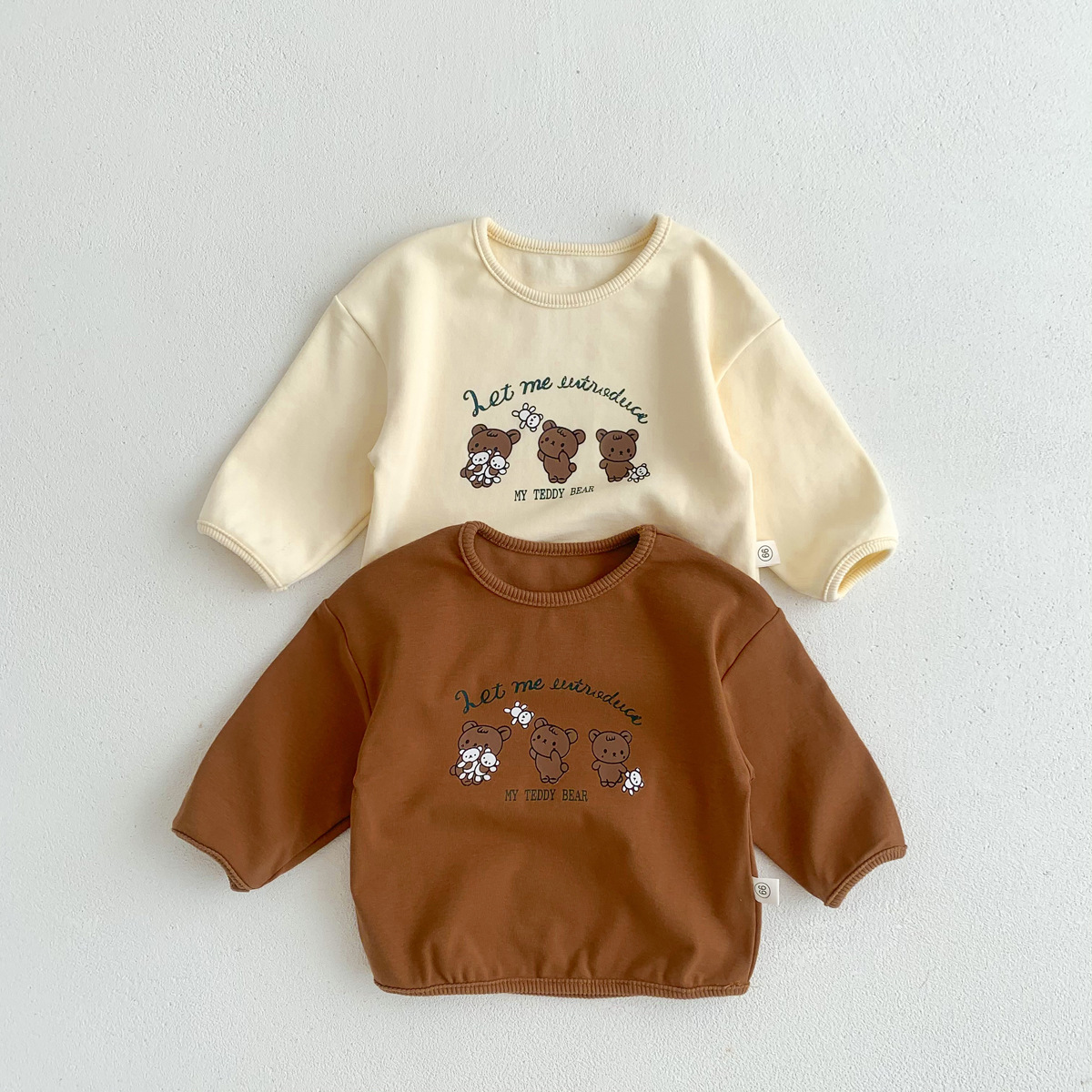 2023 어린이 봄과 가을 새로운 라운드 넥 만화 옷 단색 아기의 긴 소매 면 티셔츠 소년과 소녀 기본 셔츠스토어 가기