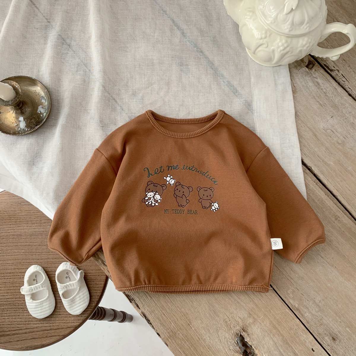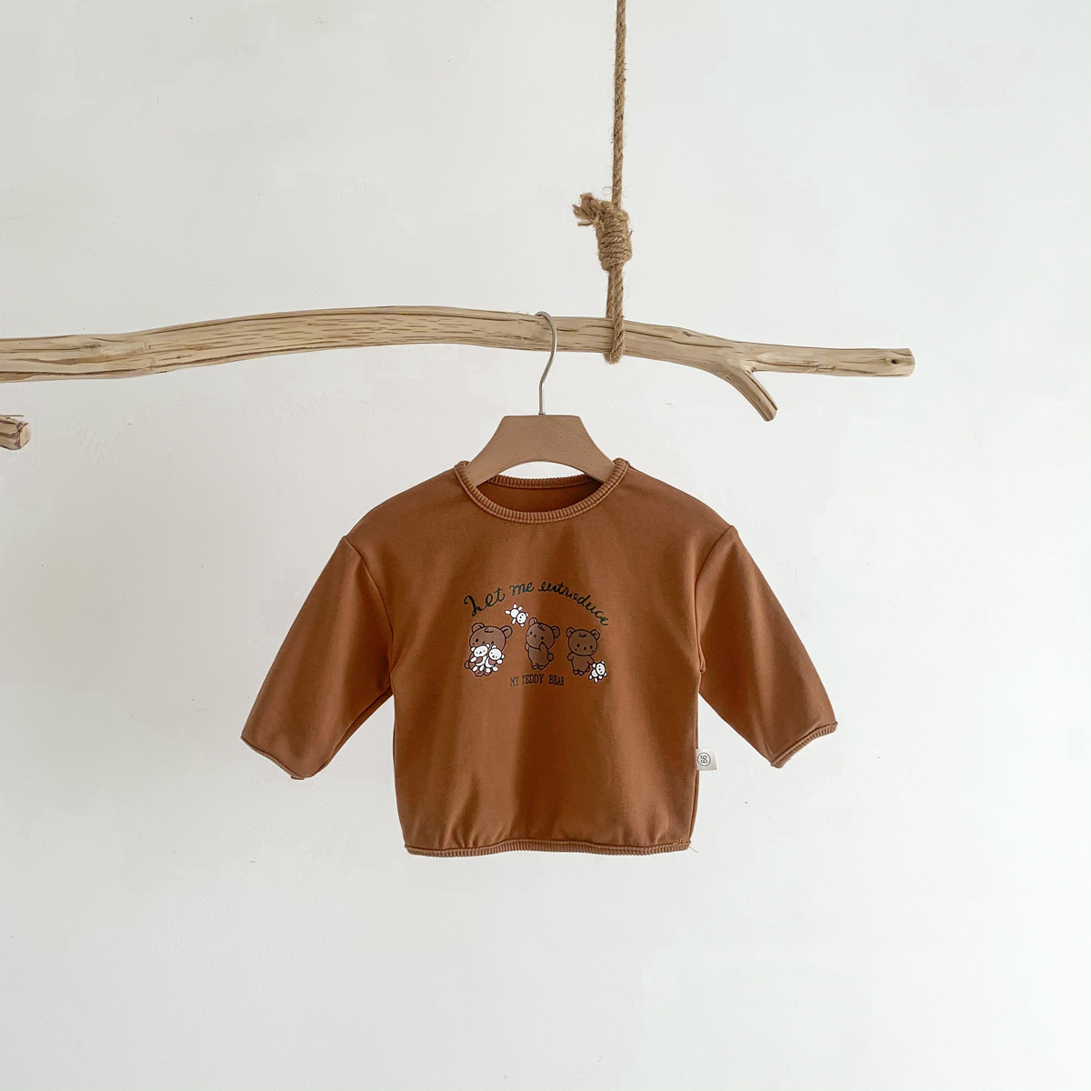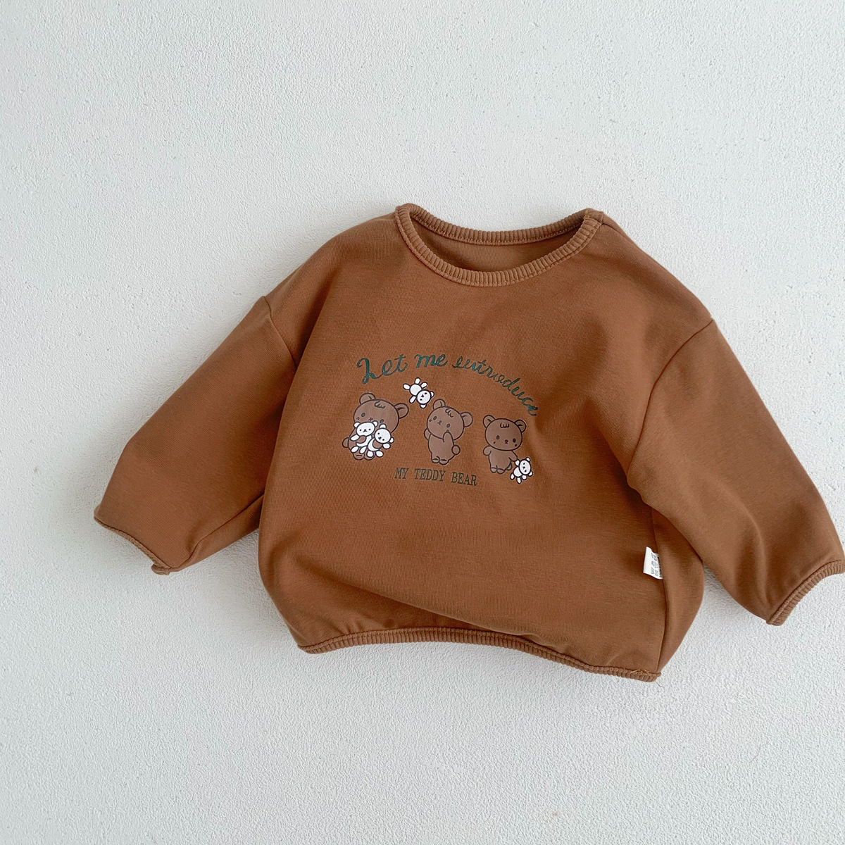 2023 어린이 봄과 가을 새로운 라운드 넥 만화 옷 단색 아기의 긴 소매 면 티셔츠 소년과 소녀 기본 셔츠스토어 가기