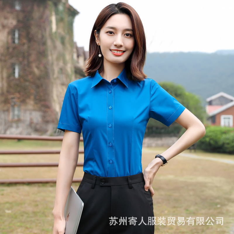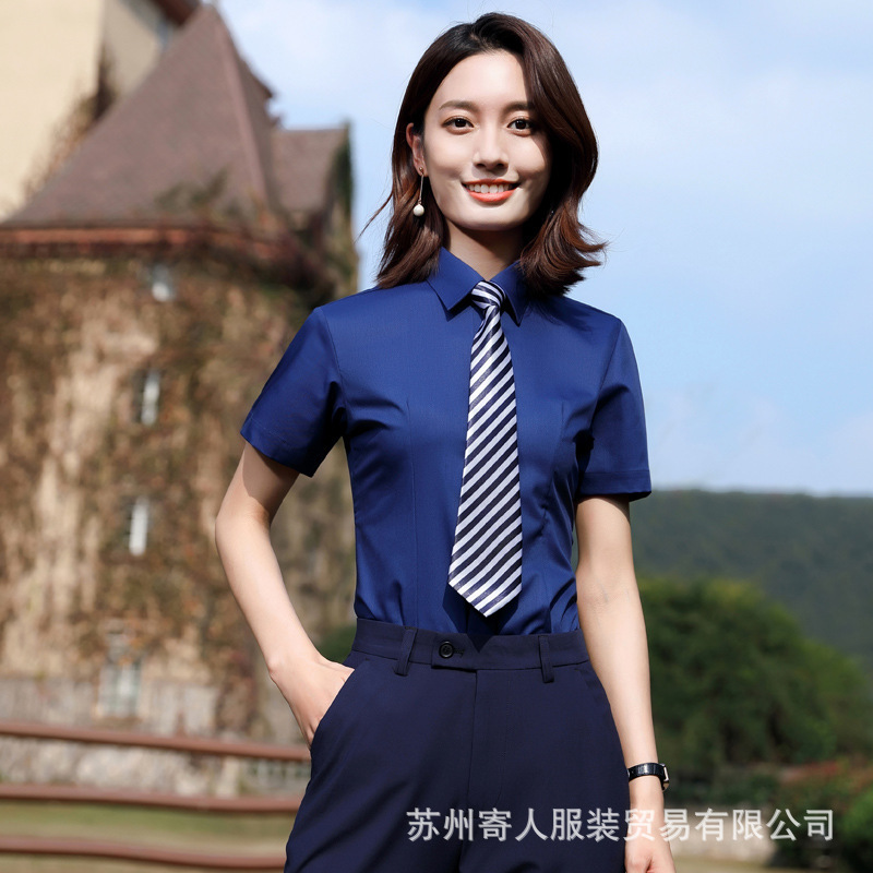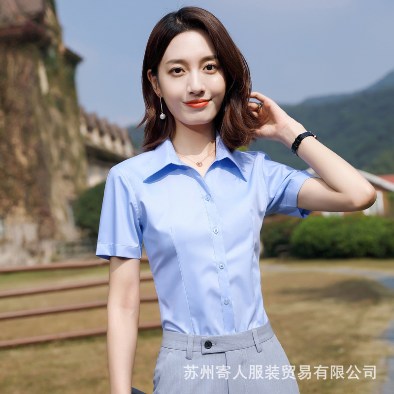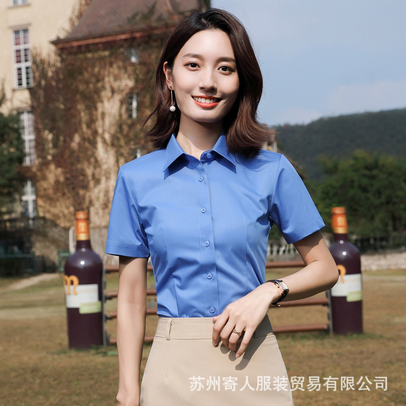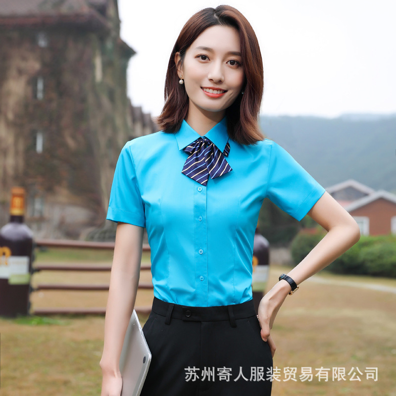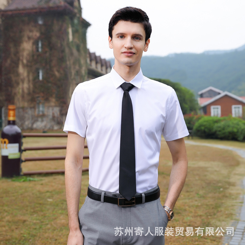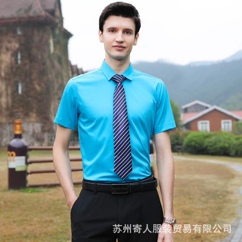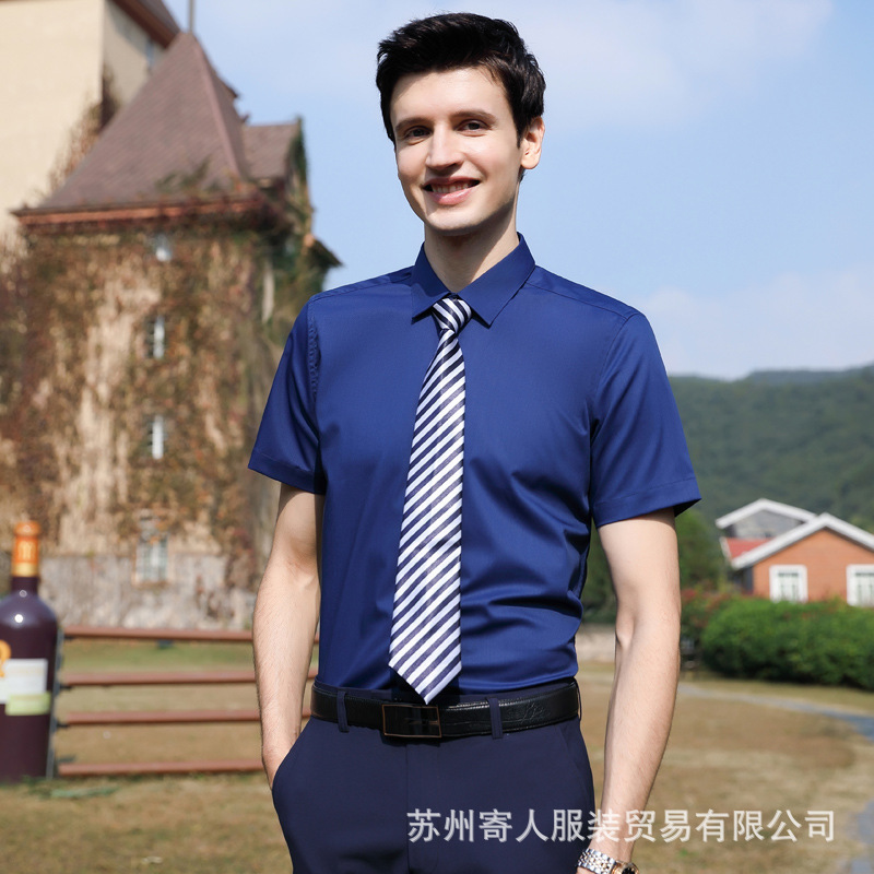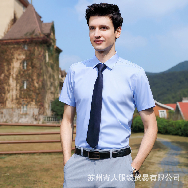비 다림질 남성용 반팔 셔츠 비즈니스 원피스 화이트 블루 호텔 4S 상점 판매 작업복 전문 셔츠 남성스토어 가기