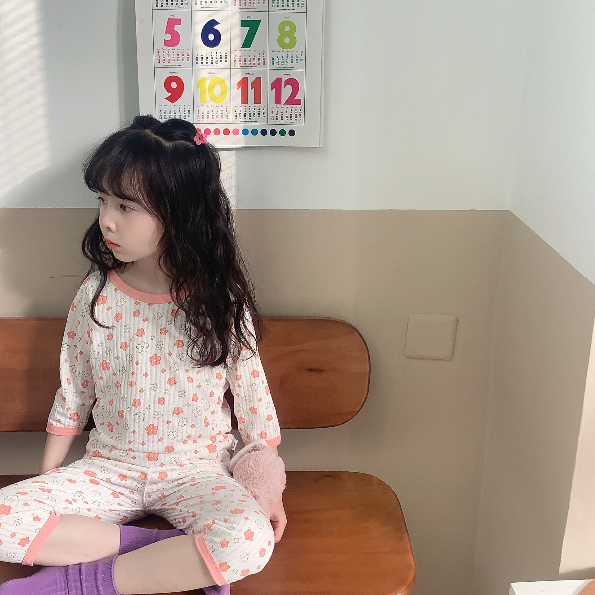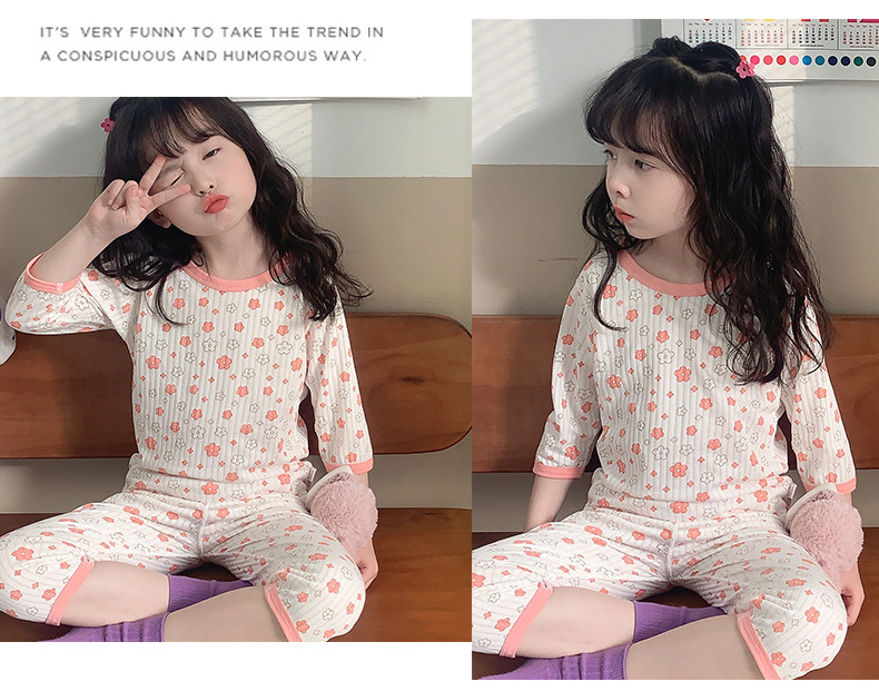 어린이 잠옷 여름 얇은 7 소매 소녀의 만화 가정 의류 세트 아기의 반팔 에어컨 의류 여름 세트스토어 가기