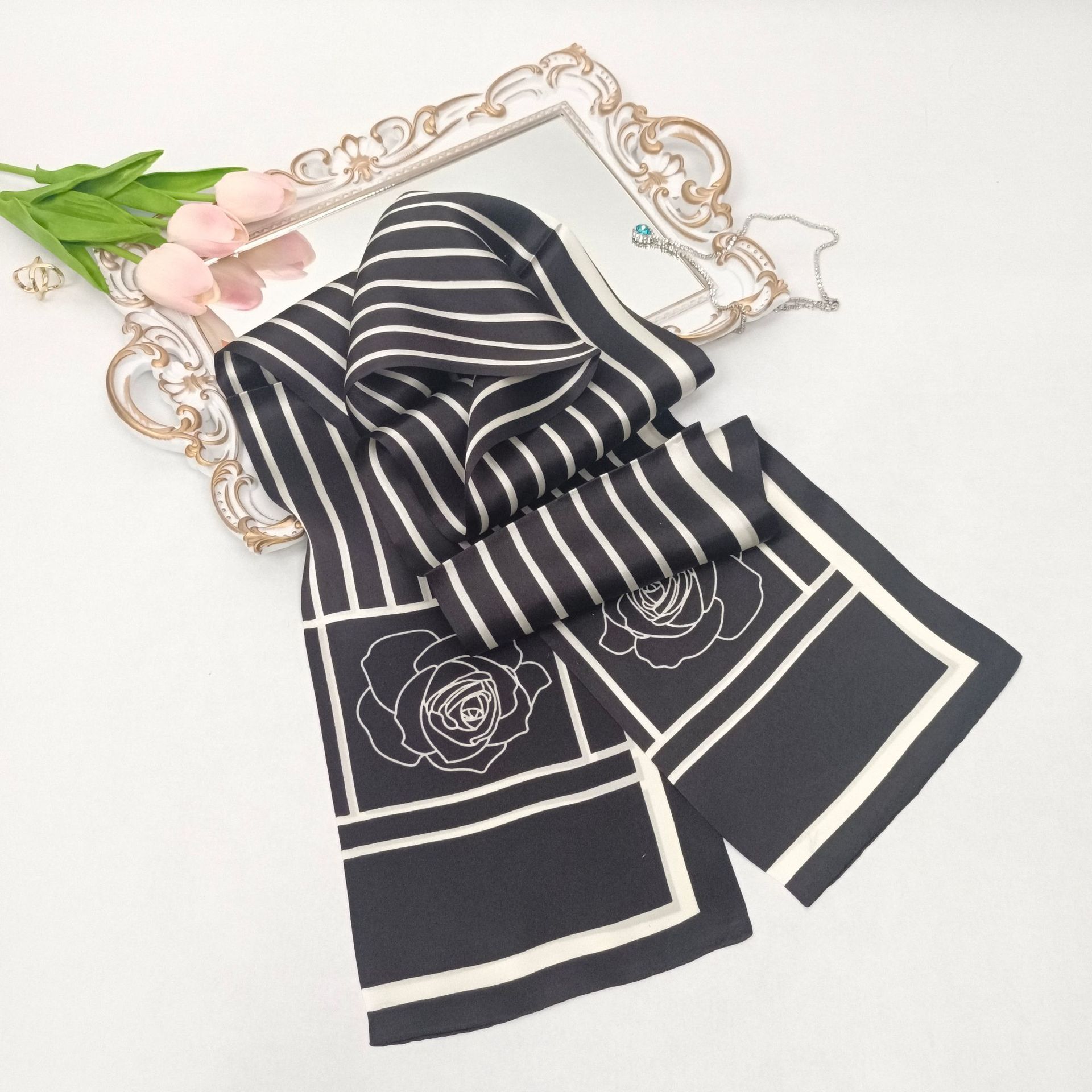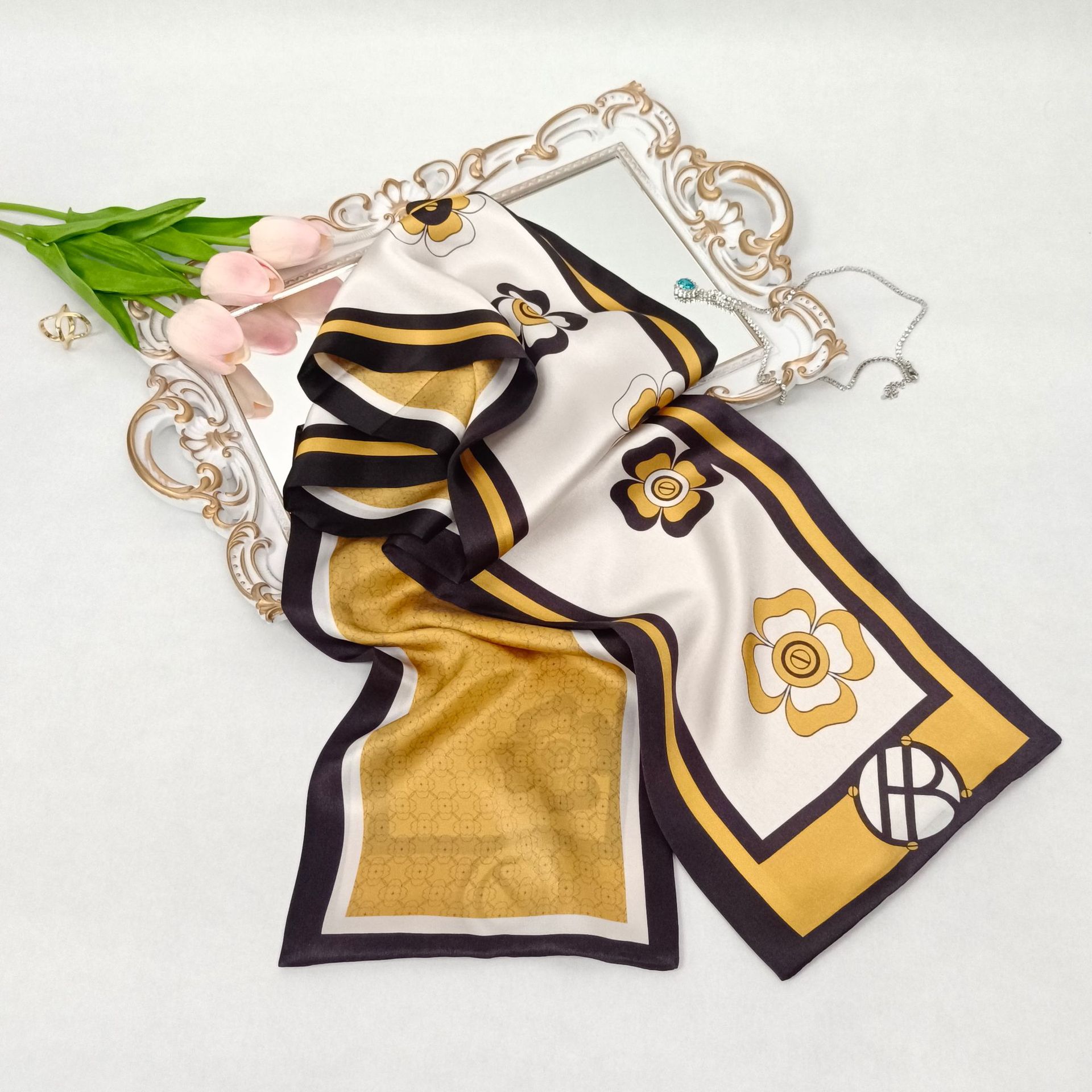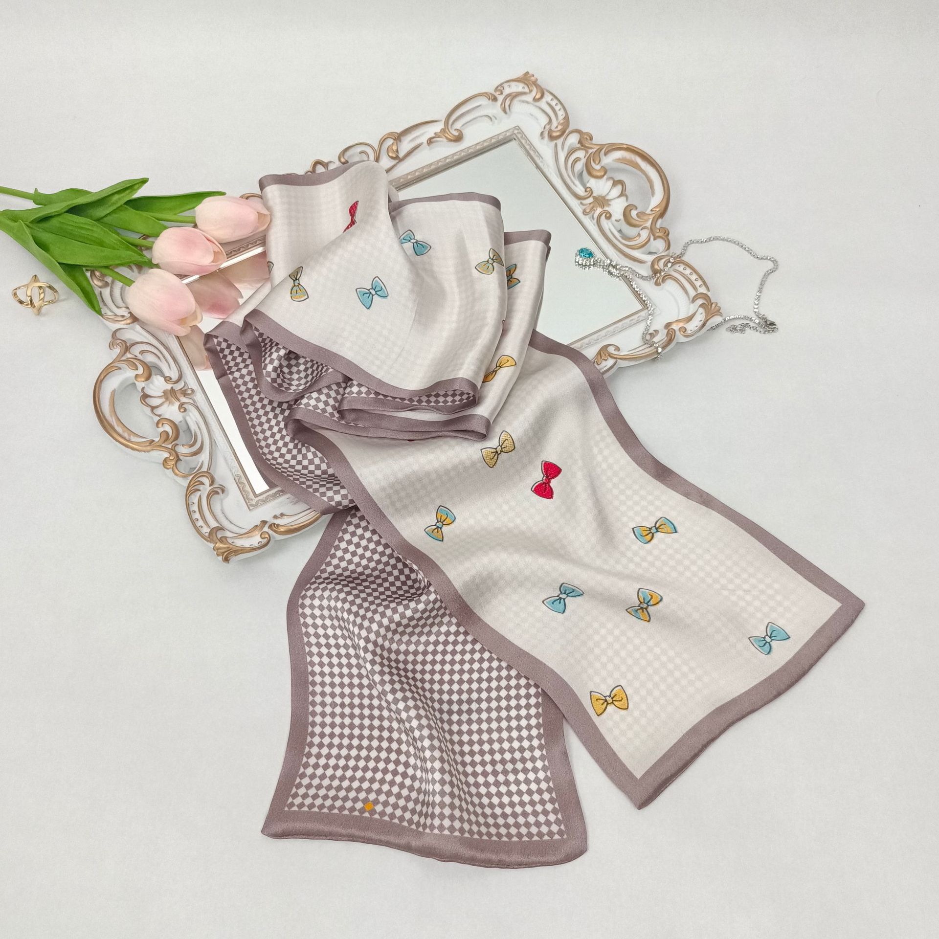 항저우 실크 스카프 여자의 봄 새로운 모든 일치 실크 인쇄 리본 고급 비즈니스 뽕나무 실크 스카프 도매