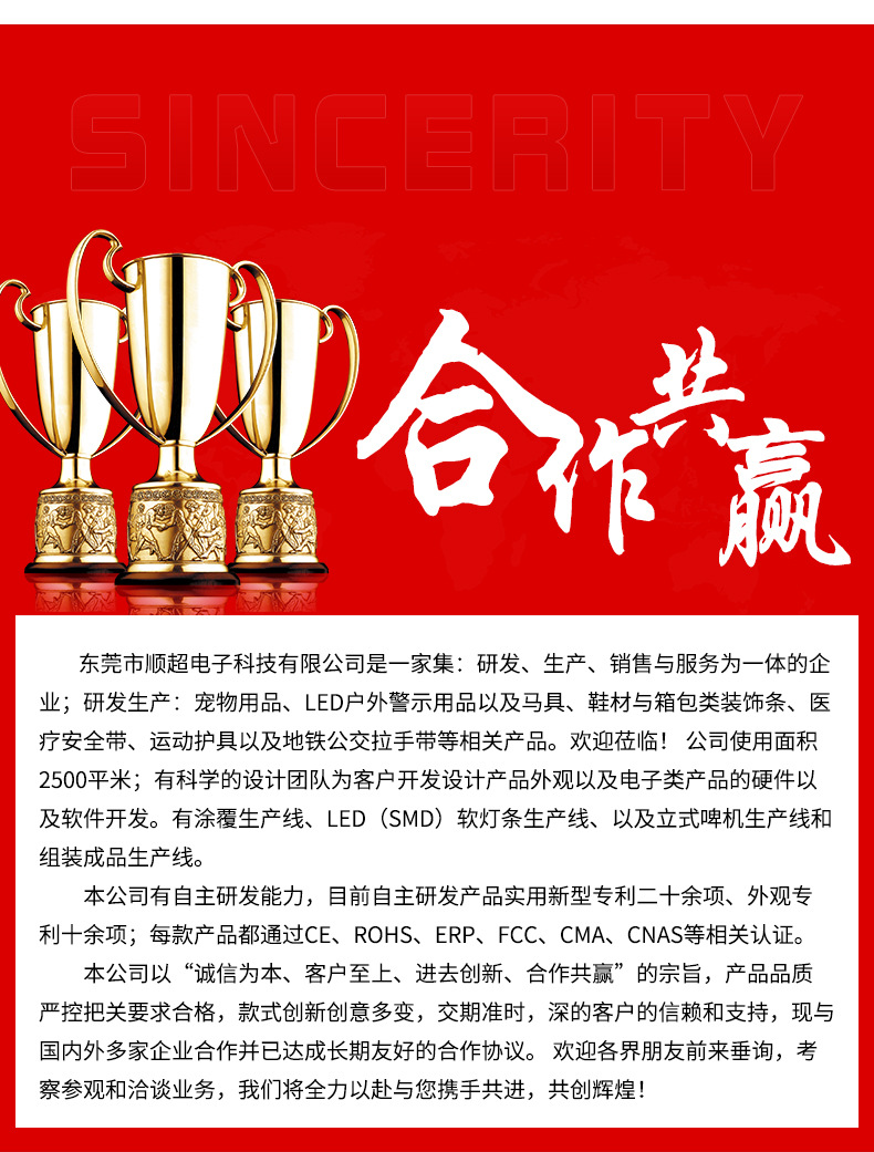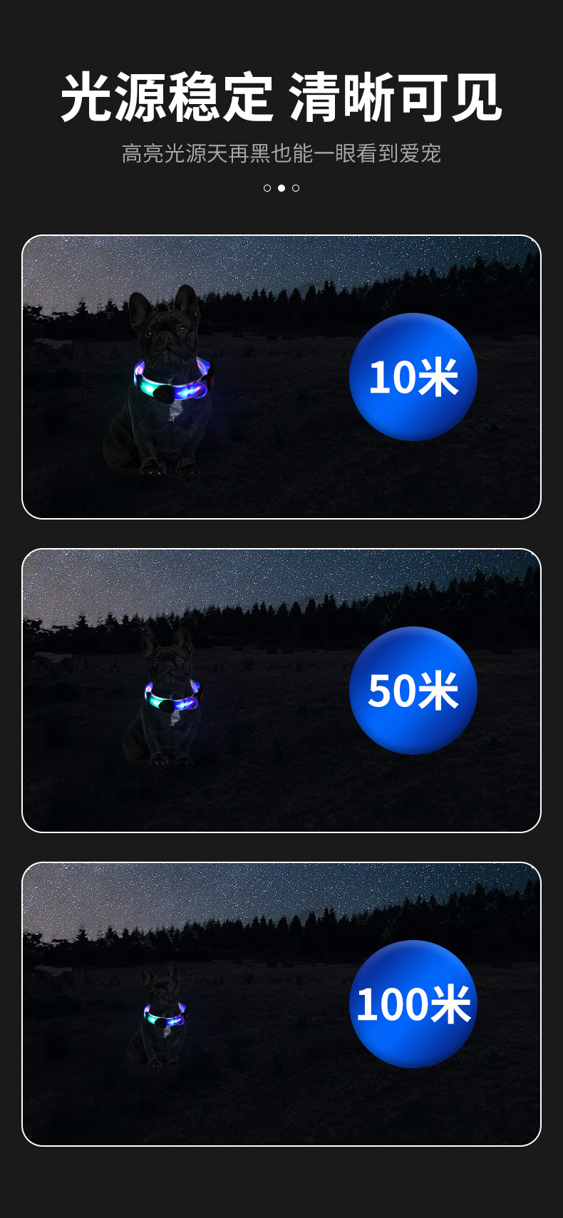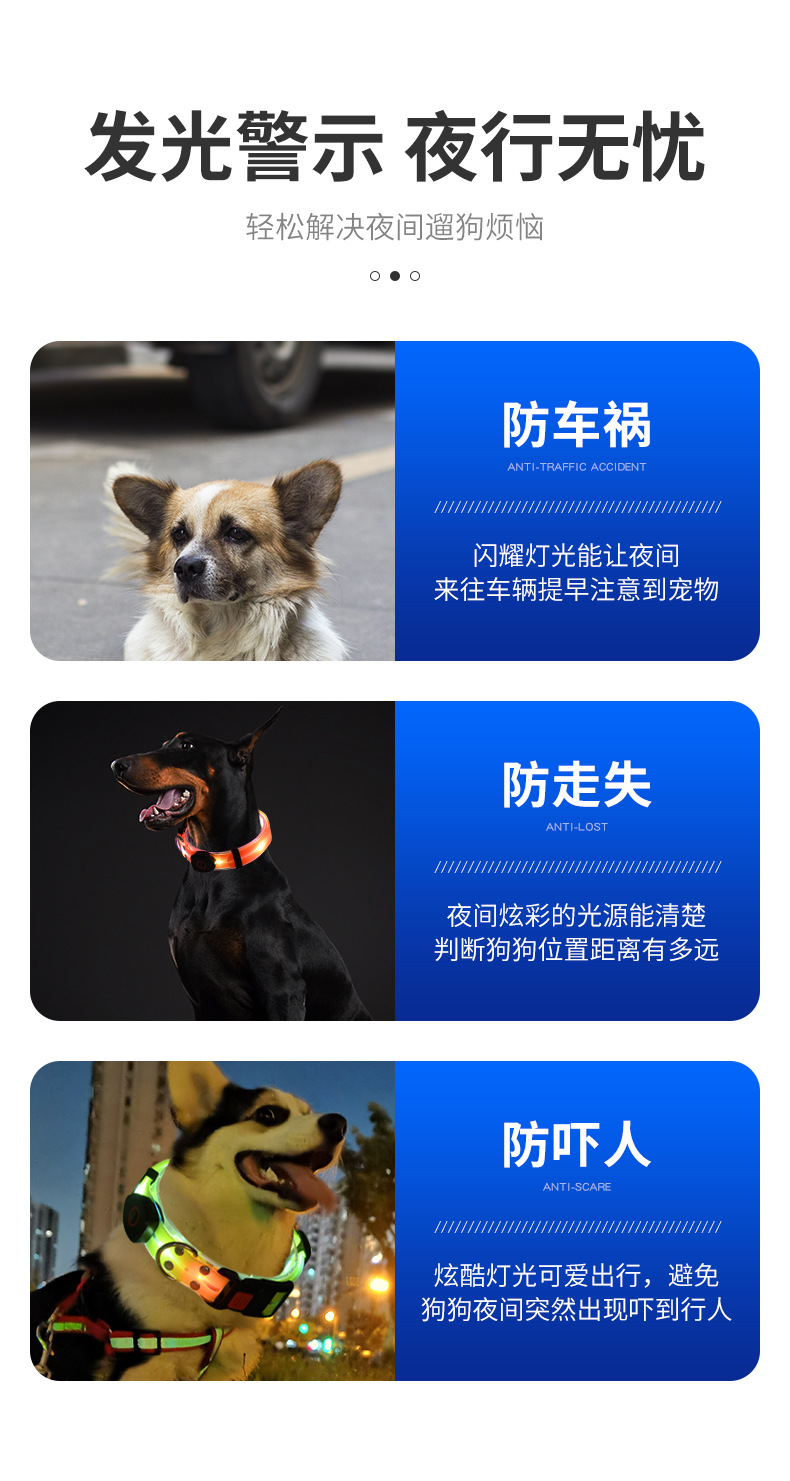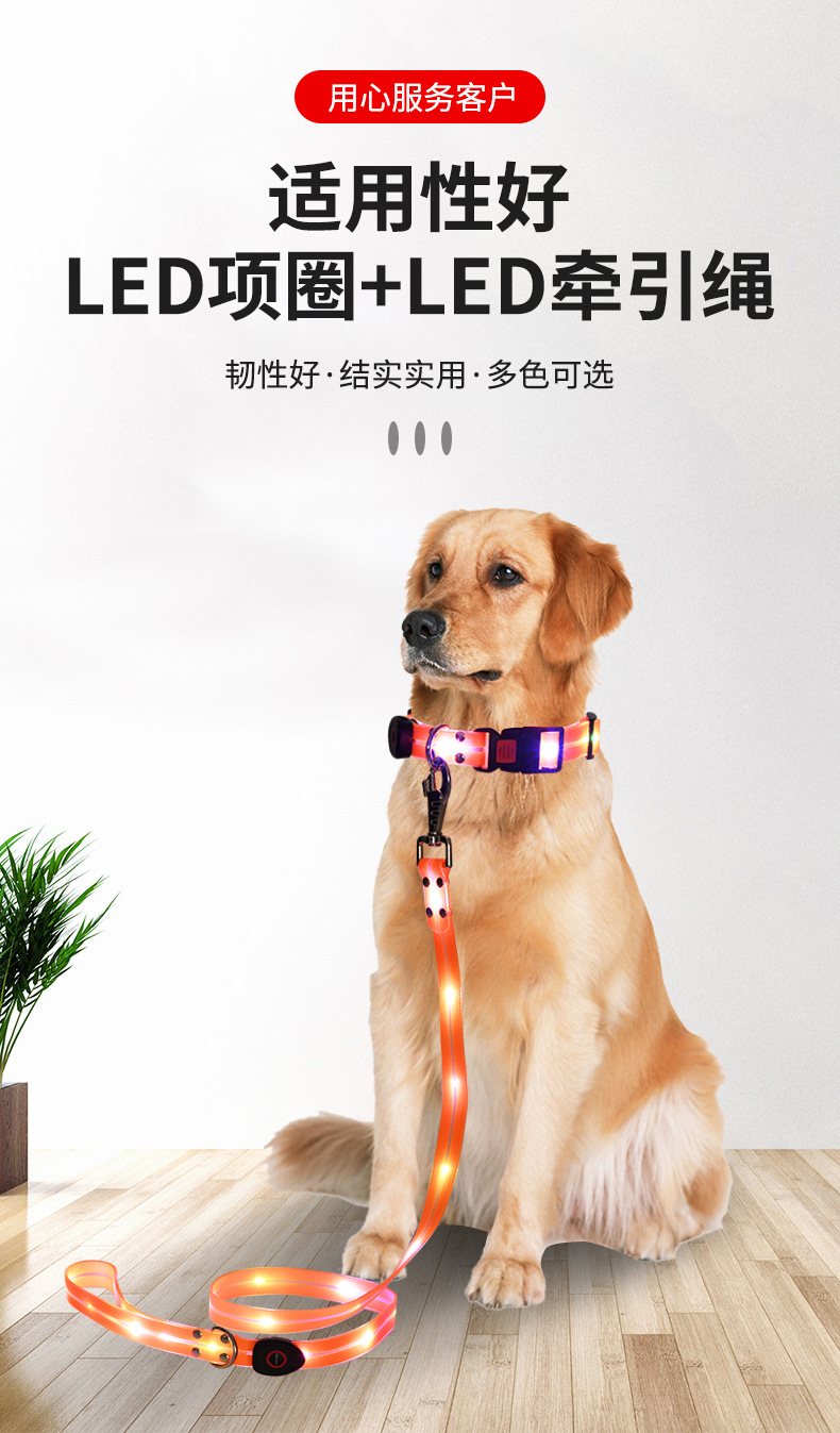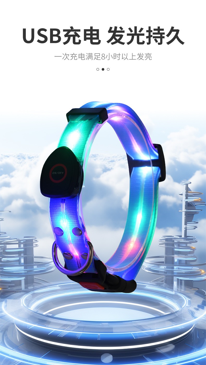 6、 发光时间:项圈:10小时,牵引带:8小时。