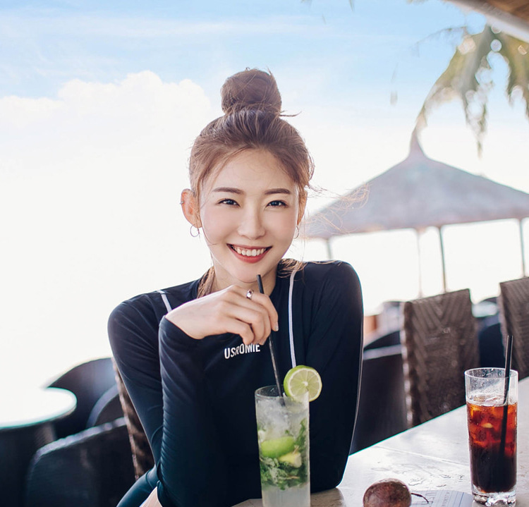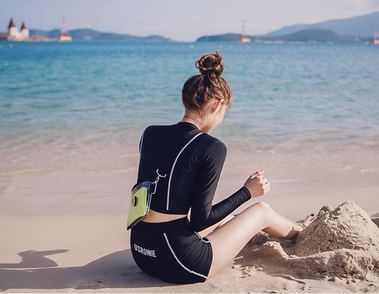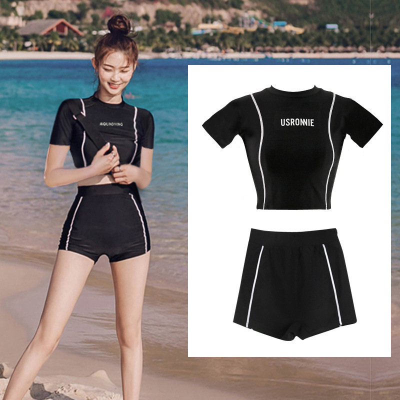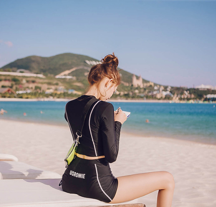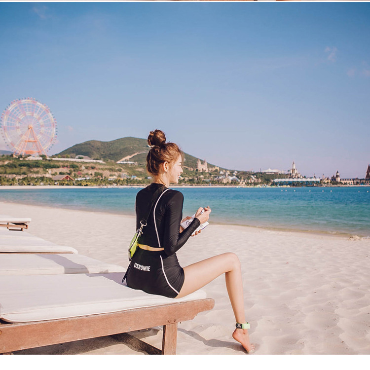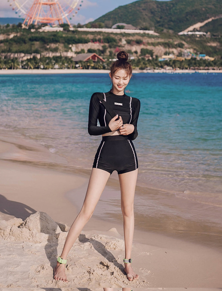 스플릿 수영복 여성용 복서 긴팔 자외선 차단제 보수적 인 하이 웨이스트 슬리밍 섹시한 수영복 온천 해변 수영복스토어 가기