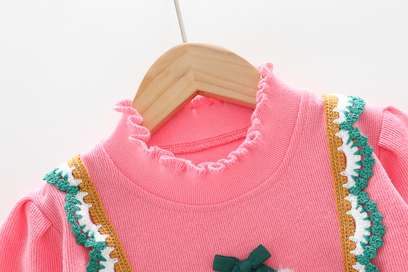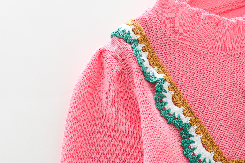 봄 웨스턴 스타일 크로 셰 뜨개질 레이스 여아 투피스 세트 아동 캐주얼 모든 매치 투피스 세트 아기의 봄과 가을 패션 세트