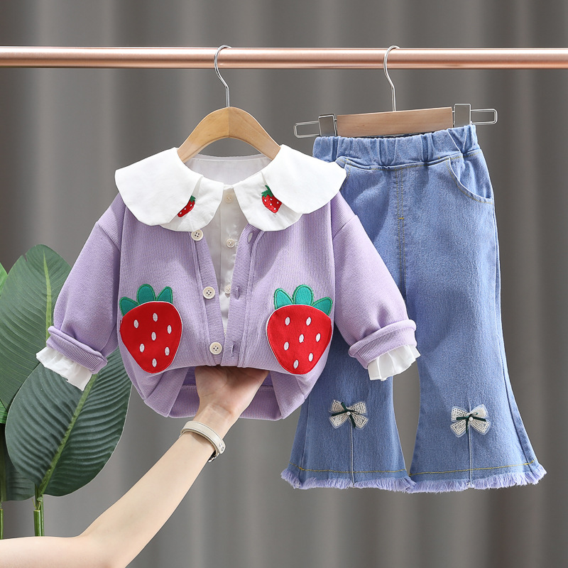 봄 아기 서양 스타일의 세대 큰 딸기 소녀 3 피스 어린이 캐주얼 패션 의류 어린이 패션 세트
