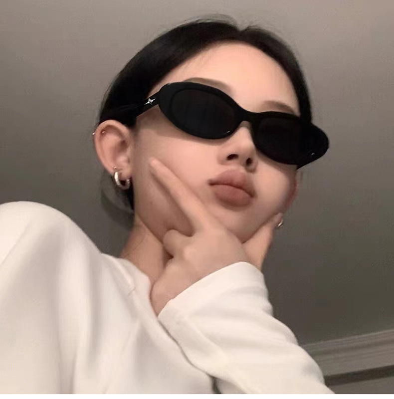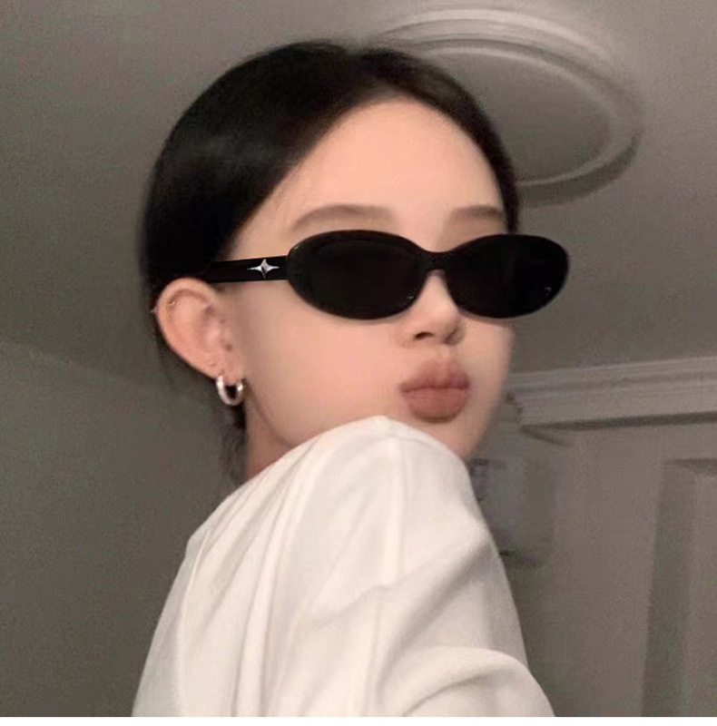 제니 같은 스타일 블랙 선글라스 여성 하이 센스 인 원 스타 레트로 타원형 스파이스 걸스 블랙 선글라스