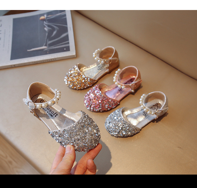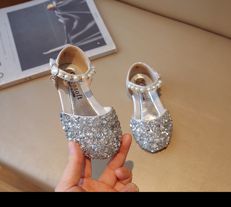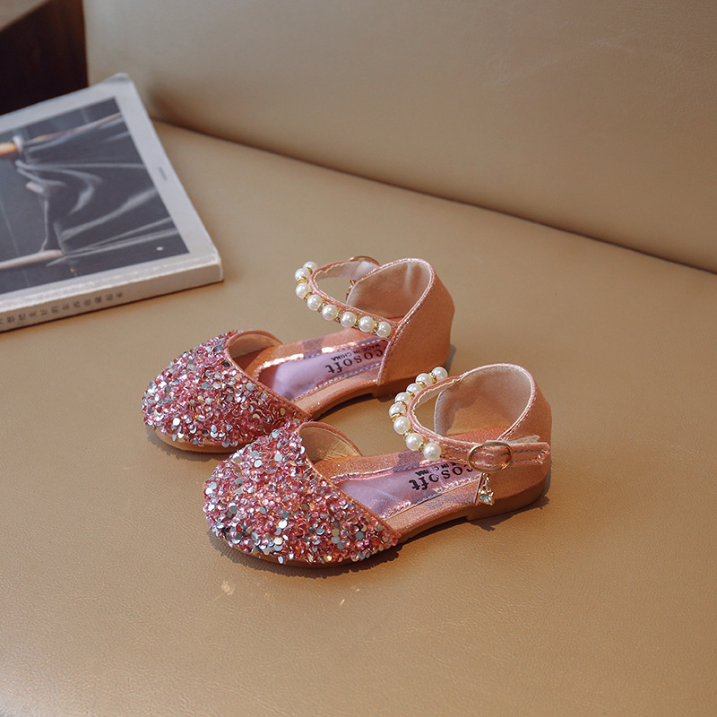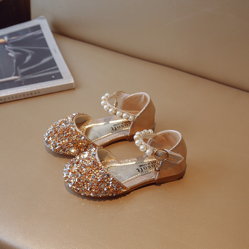 女童包头凉鞋2023春夏新款韩版女宝宝蝴蝶结公主鞋儿童珍珠舞蹈鞋