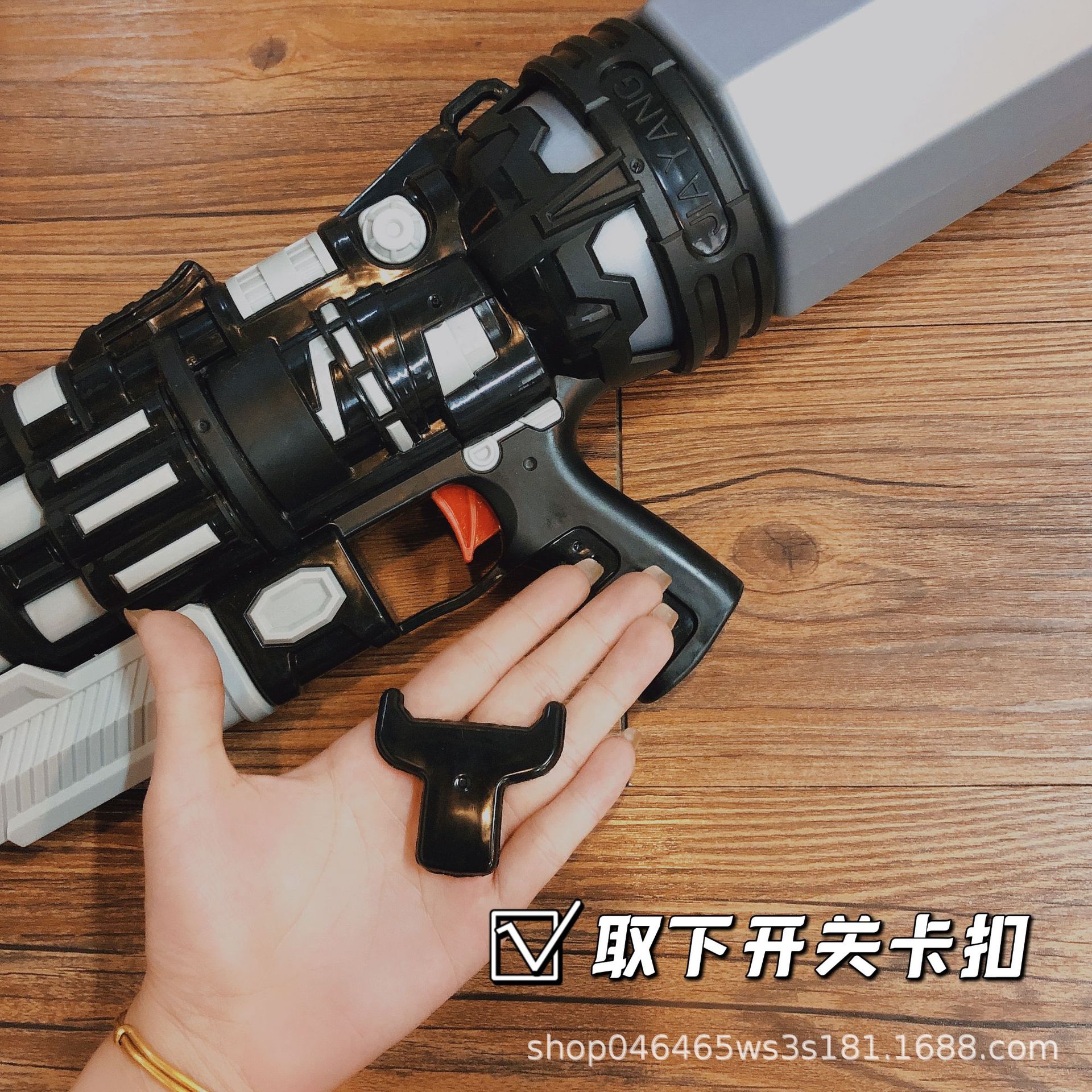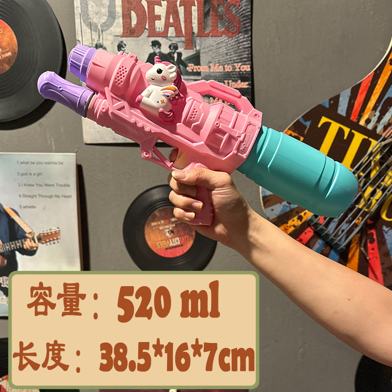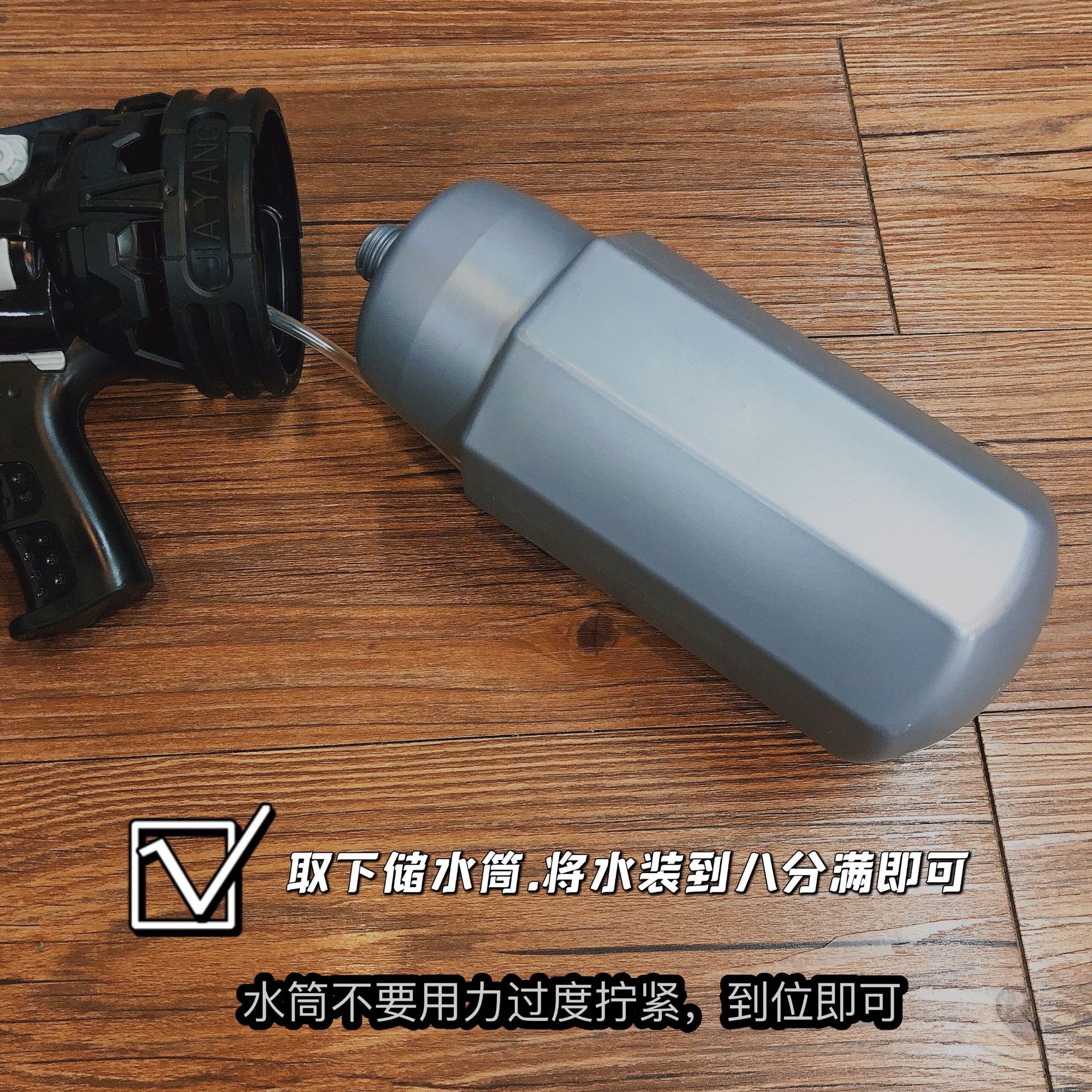 水枪开关锁取出  装水八分满即可。 打气3-4下后按住扳机打气同时进行的亲 ,水枪没气泵可以释放多余气体 切勿贪心打气多多不按扳机导致撑开筒或是坏内管,