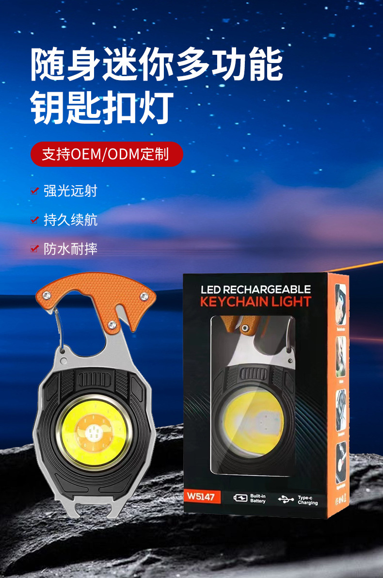 제조업체의 휴대용 미니 다기능 작업 조명, 고출력 강한 빛, 휴대용 자동차 캠핑 키체인 조명, 강한 빛