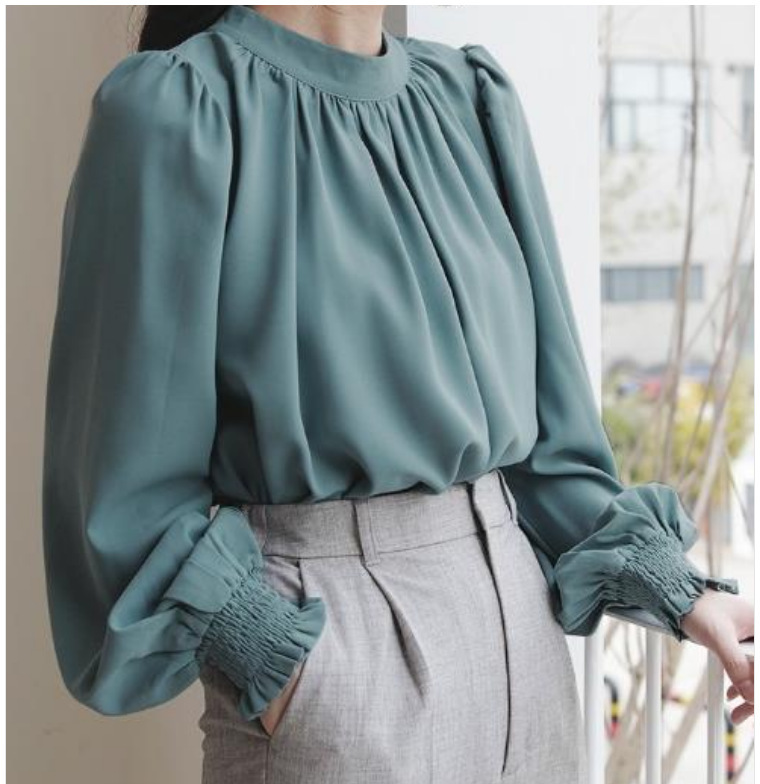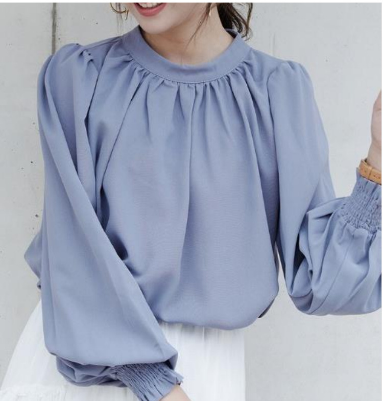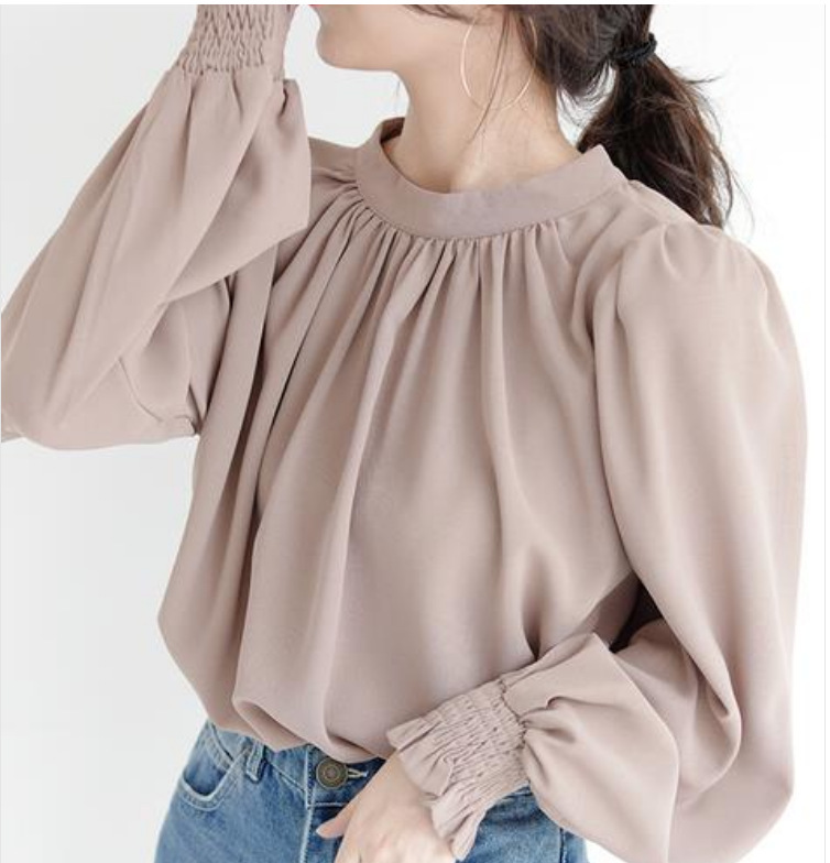 유럽역 롯데 같은 스타일 2025 봄 한국식 속건성 주름 방지 라운드 하이넥 퍼프 슬리브 쉬폰 셔츠 탑스토어 가기