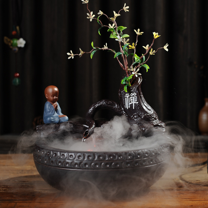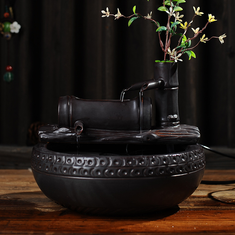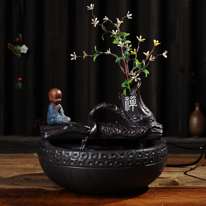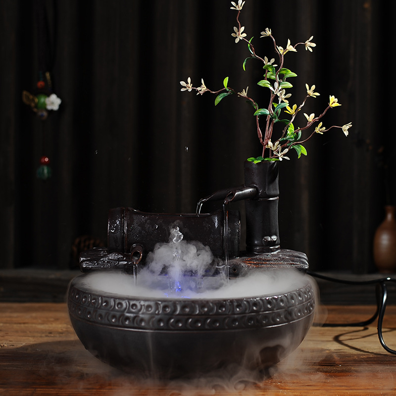 창조적 인 흐르는 물 장식품 분수 가습기 거실 사무실 세라믹 바위 흐르는 물 커피 테이블 장식 순환 시스템